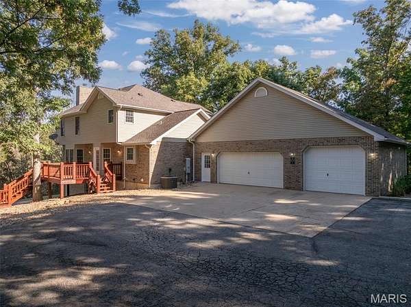 Stunning Custom Home on 8.26+/- Unrestricted Acres - No HOA! Nestled in a serene, park-like wooded setting, this beautifully crafted 5-bedroom, 3.5-bath home is located in the highly sought-after Silex School District and just 14 minutes from Troy's shopping and dining. Situated on a scenic, wooded hilltop off a paved road, the property offers the perfect blend of privacy and accessibility. Step inside to find custom features throughout, including hardwood floors, vaulted ceilings, special millwork, and two cozy fireplaces. The spacious eat-in kitchen is a chef's dream with a center island, breakfast bar, oak cabinetry, pantry, and separate formal dining room--ideal for entertaining. Additional highlights include a welcoming entry foyer, main-floor laundry and central vacuum system.