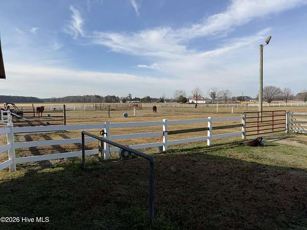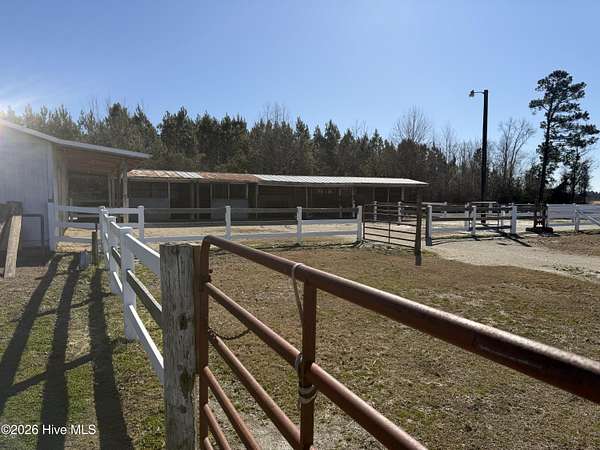 Est $1,637/moFenced Horse facilities with a modular home. Several barns and sheds, running water to the pastures. Home has a screened porch and deck. There is a shooting range on the road behind the property (off Spring Garden Road) Owned by Craven County Law Enforcement. The round mobile pen does not convey. Easy access to New Bern via US 70. Private setting with only one access point from the highway.
