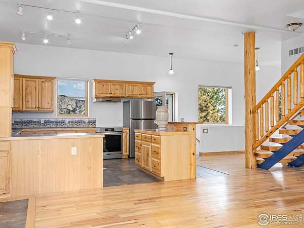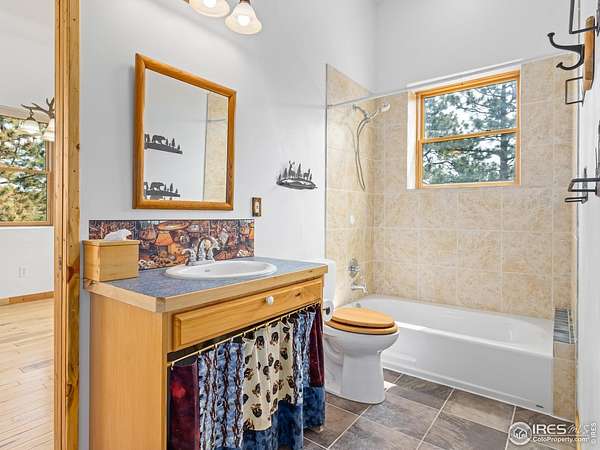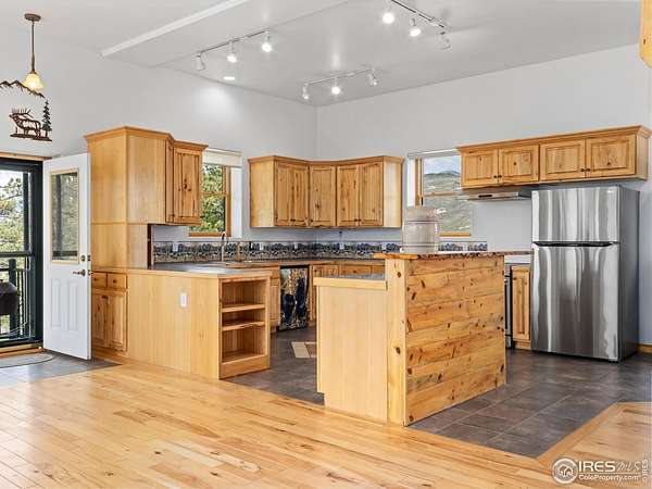 Welcome to 100 Snow Top Dr-an exceptional custom-built mountain retreat on nearly 7 private acres in Drake, Colorado. This 4-bedroom, 4-bath home offers over 3,500 square feet of thoughtfully designed living space with incredible views, end-of-road privacy, and National Forest bordering on three sides. Built for lasting quality and energy efficiency, the home features Insulated Concrete Form (ICF) construction with stucco exterior, steel stud framing, and concrete walls. Heating options include dual propane furnaces, a cozy wood stove, and auxiliary radiant electric heat in select areas. Additional energy features include a whole-house transfer switch, electric start generator, and a 2,500-gallon cistern for water storage. Inside, you'll find two spacious primary suites. The open-concept main living area highlights the panoramic mountain views and includes a large kitchen with a walk-in pantry, electric induction range/oven, and on-demand hot water circulation loop for convenience. Enjoy Colorado's stunning landscapes from two concrete and steel decks-one 10'x12', the other an expansive 11'x33'. The home also includes 36-inch doorways throughout, enhancing accessibility and ease of movement. Whether you're looking for a full-time residence or a mountain getaway, this home offers rugged luxury, smart design, and direct access to thousands of acres of wilderness-all just a short drive from Estes Park and Loveland.