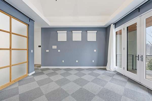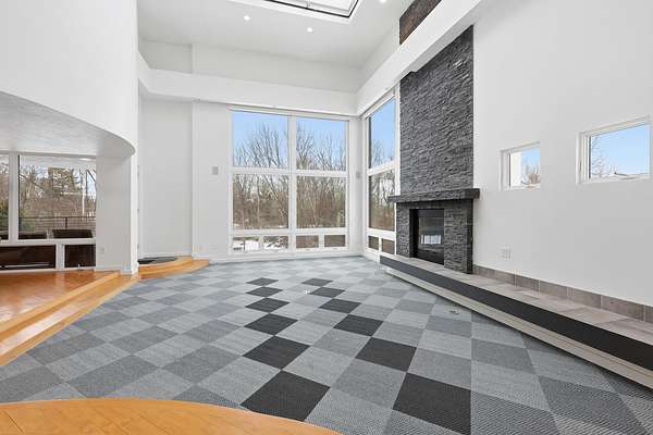 Experience refined modern living in this architecturally stunning home, where walls of glass, open-concept spaces, and elevated finishes create a seamless blend of sophistication and comfort. The main entrance offers a first-floor office and bridal staircase. The impressive great room soars to the second floor, bathed in natural light from expansive windows that frame picturesque views of the property. Designed for both grand entertaining and intimate gatherings, the main living area flows effortlessly into the kitchen and dining space. Upstairs, are 3 spacious bedrooms and 2 full baths, including a luxurious primary suite featuring a private deck. The spa-inspired ensuite bath offers a beautiful walk-in shower, elegant soaking tub, and designer details throughout. It's an everyday retreat of relaxation. The walk-out lower level extends the living experience with a stylish bar with fireplace, a comfortable family room and full guest suite with full bath, and access to the private outdoor oasis. Step outside to your own resort-like setting, complete with a hot tub and sparkling saltwater pool, multiple expansive decks on both levels, and beautifully landscaped surrounding which is ideal for entertaining or peaceful evenings under the stars. A spacious three-car garage completes this exceptional residence, combining thoughtful design, functionality, and luxurious modern living.