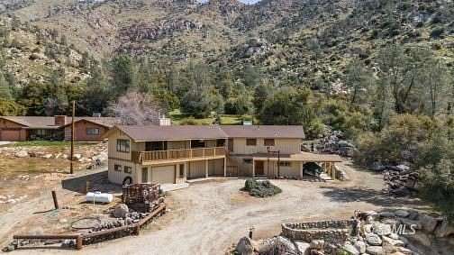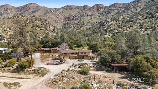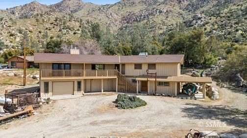 Own Nature in Your Surroundings with this Kernville Estate. The home sits on .8 acre, with 40.24 acres behind it zoned for horses and available for sale. 2 more 1-acre parcels zoned C2 with highway frontage in front of home are also available for sale. Take one of the trails behind the house up to rabbit rock & the spring to enjoy the silence of nature and vast views! The circular driveway allows entry to the home up the stairs, or downstairs into guest quarters with a living room, bedroom, full bath, and office. Drive up and around to the back to enter into the living room/kitchen area with pantry, 2 bedrooms, bath, living room, game room, laundry room, and solarium. Stunning view of Isabella Lake and Kernville countryside with deer and quail from large picture windows. 2 storage sheds and wood storage sheds plus a deep pit BBQ! 2 car garage plus basement with workshop! One-of-a-Kind Home and Property.