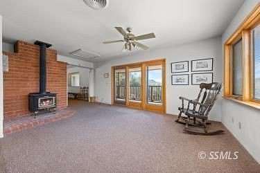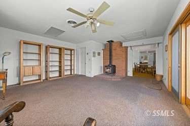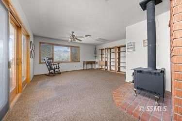 - Carpet Flooring, Linoleum/Vinyl Flooring, Walk-In Closets, Wood Burning Stove, Wood Fireplace