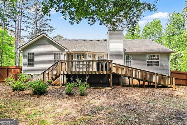 Welcome to this charming 3 bedroom, 2 bath ranch home situated on 1.89 acres, offering privacy and comfortable one level living. Step inside to a bright and inviting living room featuring tall ceilings and a cozy fireplace. The open layout flows into the kitchen, complete with stainless steel appliances, a pantry, and a dining area with views of the back deck. The primary suite has tray ceilings and an en suite bathroom featuring dual vanities, a soaking tub, separate stand-up shower, and a spacious walk-in closet. Two additional guest bedrooms share a full bathroom. Enjoy the outdoors from the back deck overlooking a private, fenced backyard. Recent upgrades include: fresh interior paint throughout, new stainless steel appliances, new HVAC and water heater, and new fence. Southeast Mortgage is our preferred lender. If buyer chooses to work with them, Southeast Mortgage will provide 1% credit up to $5,000. Reach out to the listing agent for more information.