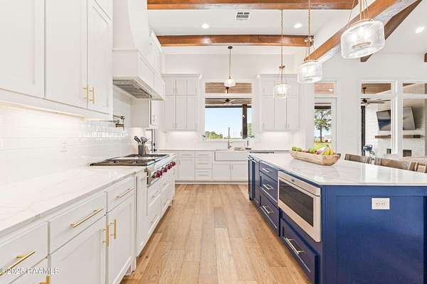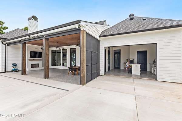 Discover luxurious country-living just minutes from the Youngsville sports complex and Southside High School, with this exquisite modern farmhouse-style estate nestled on approximately 2.4 acres in Youngsville. This stunning residence offers 4 bedrooms, 5 bathrooms (3 full, 2 half) and 3,650 sft of elegant living space. A spacious and sophisticated open floor plan, anchored by a chef's dream kitchen equipped with a 48' Wolf range and a Sub-Zero fridge. Generous indoor comfort highlighted by high ceilings, cathedral and beamed accents, crown molding, built-ins, a wet bar, and dual gas fireplaces. Premium finishes throughout. Wood and tile flooring, quartz/ granite counters, walk-in pantry and closets, and luxurious primary bath with freestanding tub and separate shower. Outdoor living at its finest. Screened back patio, in-ground pool with heater (plumbed for waterfall), and an exceptional outdoor kitchen featuring a sink, island, RCS grill, separate burner, and drink fridge. Impressive detached 20' x 40' workshop/ storage with plumbing and roll-up door. Three-car garage, tankless water heater, 25KW generator, metal roof accents, and HardiPlank siding. Built both for style and durability. Land is level and 2.4 acres with plenty of room to play, yet tucked away on a paved parish road. From the moment you step inside, the perfectly balanced blend of farmhouse charm and high‑end finishes makes a strong first impression. With its oversized lot, resort‑style backyard, and workshop, this home checks every box for the discerning buyer looking for space, style and functionality. Whether entertaining indoors or outside, relaxing in the lounge or by the pool, this property offers something for everyone. Seller offering $20,000 towards buyer's closing cost or cash back to buyer at closing!!
