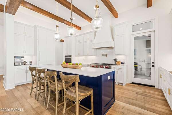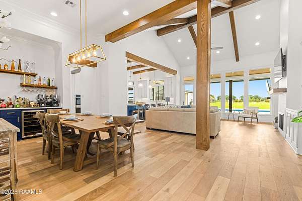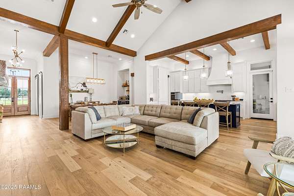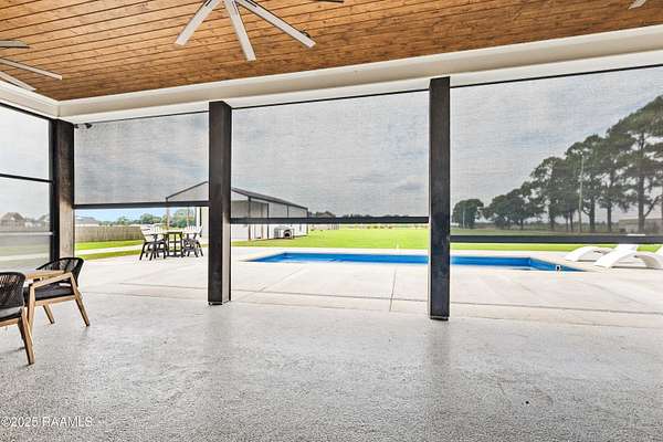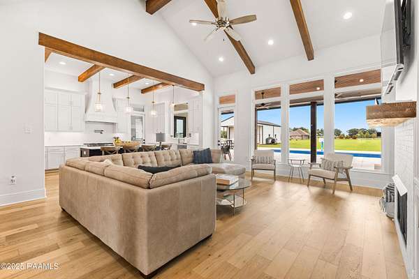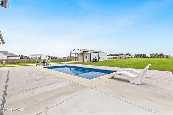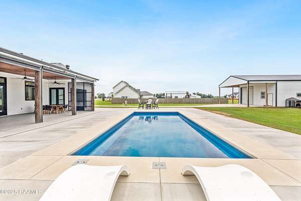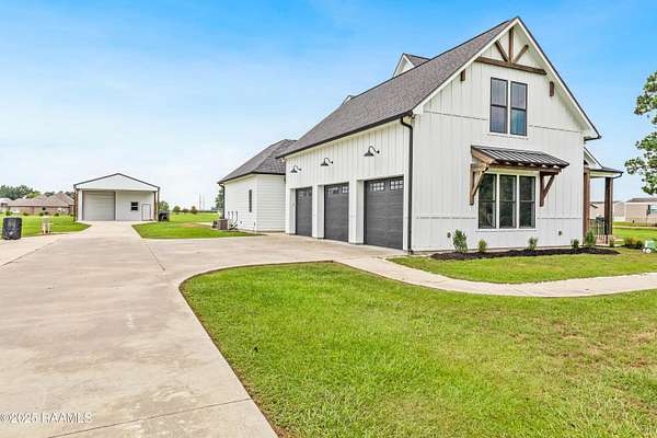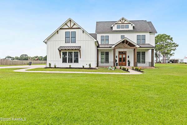 Discover luxurious country-living just minutes from the Youngsville sports complex and Southside High School, with this exquisite modern farmhouse-style estate nestled on approximately 2.4 acres in Youngsville. This stunning residence offers 4 bedrooms, 5 bathrooms (3 full, 2 half) and 3,650 sft of elegant living space. A spacious and sophisticated open floor plan, anchored by a chef's dream kitchen equipped with a 48' Wolf range and a Sub-Zero fridge. Generous indoor comfort highlighted by high ceilings, cathedral and beamed accents, crown molding, built-ins, a wet bar, and dual gas fireplaces. Premium finishes throughout. Wood and tile flooring, quartz/ granite counters, walk-in pantry and closets, and luxurious primary bath with freestanding tub and separate shower. Outdoor living at its finest. Screened back patio, in-ground pool with heater (plumbed for waterfall), and an exceptional outdoor kitchen featuring a sink, island, RCS grill, separate burner, and drink fridge. Impressive detached 20' x 40' workshop/ storage with plumbing and roll-up door. Three-car garage, tankless water heater, 25KW generator, metal roof accents, and HardiPlank siding. Built both for style and durability. Land is level and 2.4 acres with plenty of room to play, yet tucked away on a paved parish road. From the moment you step inside, the perfectly balanced blend of farmhouse charm and highend finishes makes a strong first impression. With its oversized lot, resortstyle backyard, and workshop, this home checks every box for the discerning buyer looking for space, style and functionality. Whether entertaining indoors or outside, relaxing in the lounge or by the pool, this property offers something for everyone. Seller offering $20,000 towards buyer's closing cost or cash back to buyer at closing!!