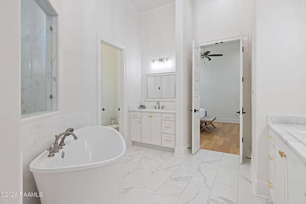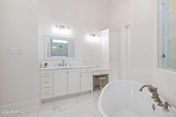 - 9+ ft Ceiling, Beamed Ceilings, Built-In Features, Built-Ins, Cathedral Ceiling, Cathedral Ceiling(s), Crown Molding, Double Vanity, Electric Dryer Con, Electric Washer Con, Garden Tub, Granite Counters, High Ceilings, Kitchen Island, Separate Shower, Soaking Tub, Standalone Tub, Varied Ceiling Heights, Walk-In Closet(s), Walk-In Pantry, Wet Bar