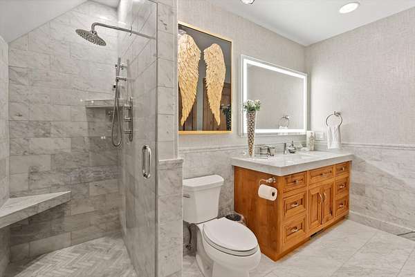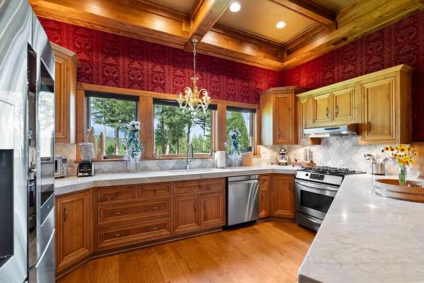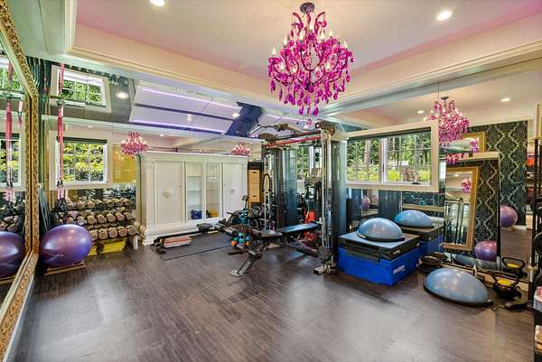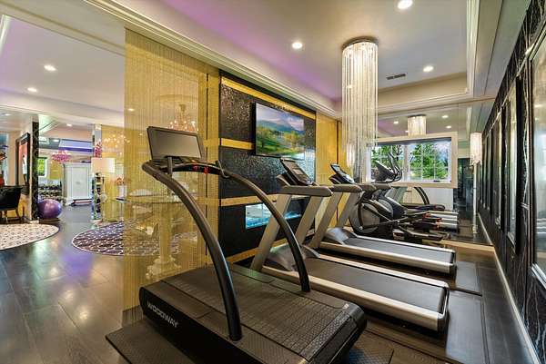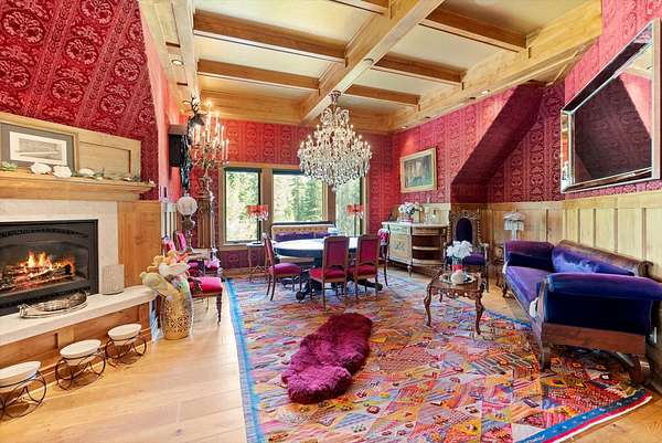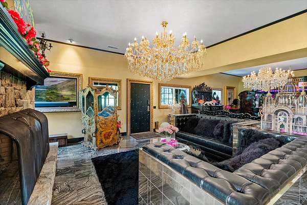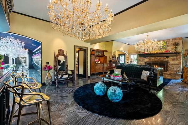 - Additional Living Quarters, Fireplace, Home Theater, Main Level Primary, Open Floorplan, Sauna, Vaulted Ceilings, Walk In Closets, Wet Bar, Wired For Data, Wired For Sound