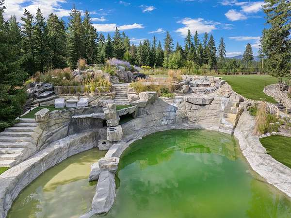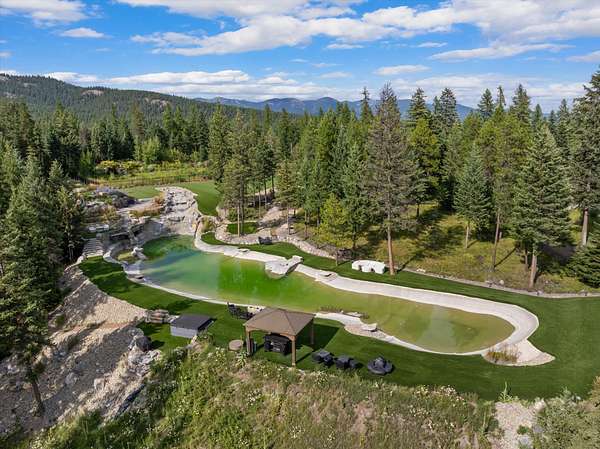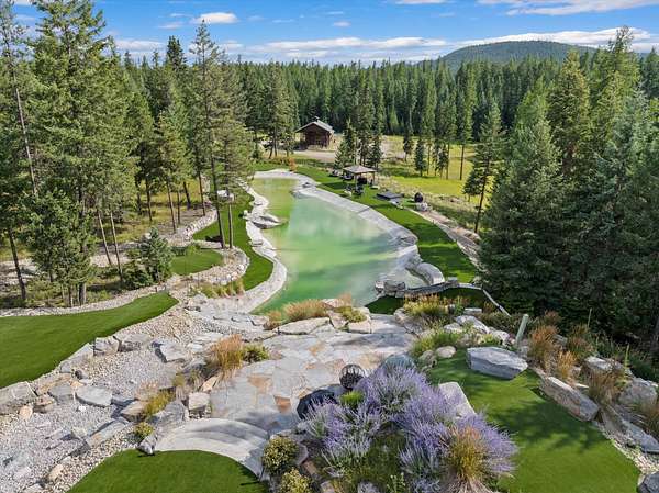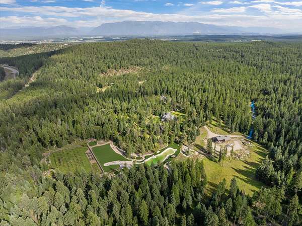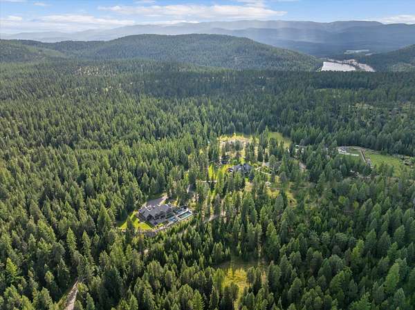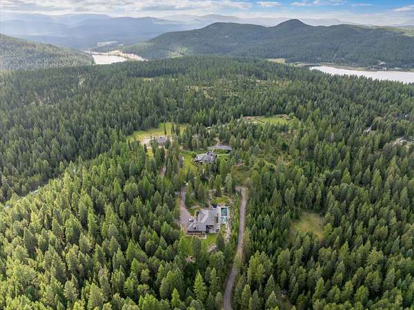 TWO grand homes on 40 fenced acres with mountain views in the coveted Whitefish Hills community. Both furnished homes are a masterpiece of design. Soaring ceilings, floor-to-ceiling windows, and expansive spaces for grand scale entertaining. Hand-selected stone, rich woods, and bespoke textiles adorn every surface. The true genius of this property lies in its amenities, which rival exclusive resorts. A private playground, offering an array of recreational and leisure opportunities: gym, spa, theatre room, bowling ally, game room, swimming pool, 2 hot tubs, Olympic-depth, man-made swimming lake with waterfall and rock cliff for diving, Astro turf entertaining spaces, putting green, bocce ball, 6 fire pits & 7 water features. Miles of walking/skiing trails wind through the property's lush forests, which border State land. An established orchard and herb garden provide farm-to-table living. The detached garage and barn provide space for vehicles, toys or future living space expansion.