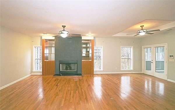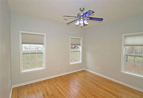 WOW! Enjoy living in a sought after RANCH on a private 1.6 acre wooded lot and in a quiet cul-de-sac. PERFECT FOR NATURE LOVERS! You'll enjoy a peaceful lifestyle with good schools, shopping, and restaurants nearby. This home is well maintained with energy efficient features, a great open plan/flex space, which is perfect for entertaining. There are large rooms, lots of cheery natural light, abundant storage,10' ceilings, tray ceilings in dining area and master suite. The interior is desirable mid-century modern with solid surface flooring throughout (no carpet). Flooring is either beautiful red oak hardwoods or porcelain tile. The lovely welcoming foyer with decorative glass block wall leads to the large family room and generous galley kitchen. Enjoy the family room/dining area with decorative wall which includes the fireplace and built-ins. The sunroom is off the family room. The galley kitchen has stained wood cabinetry, Silestone counters, lovely decorative slate tile backsplash, stainless appliances, with chimney style hood, neat pantry, and pendant lighting over breakfast bar. The convenient laundry room with sink is off the kitchen-washer/dryer included. Enjoy large private master en-suite with great windows, huge closet, tray ceiling, double vanities in bath, stained wood cabinetry, soaking tub, and separate shower. Also, there's a hall bath and the two secondary bedrooms are generous with good closets. The sunroom and large lower deck are great outdoor features. Travel down the stairs from the sunroom to the lower deck which is perfect outdoor space to enjoy nature and relaxing. Great space for grilling. There's a generous two car garage with EV receptable for an electric vehicle. ENERGY EFFICIENT FEATURS: dual pane windows, recently added insulation-now R38, HVAC replaced two years ago, tankless hot water heater with continuous on demand water heating, and new roof. Monthly rent includes: pest control, security system, and yard maintenance. Landlord requires tenants to have good credit, sufficient stable income, and great rental history.