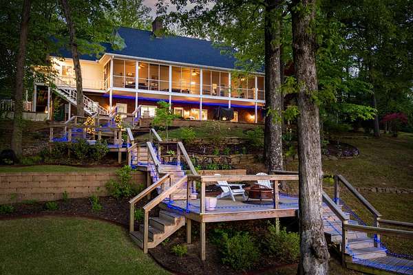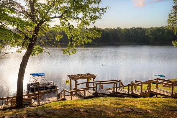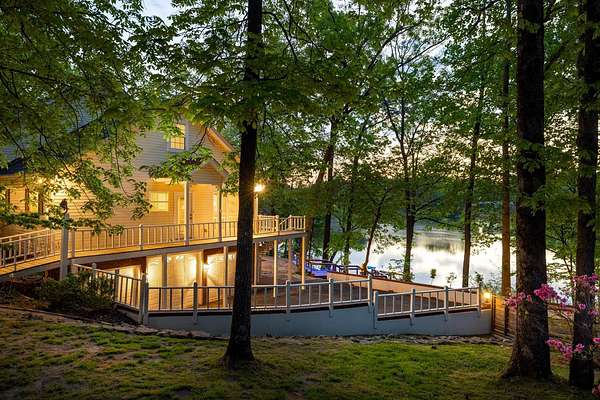 Spectacular Waterfront Property w/boat dock on 57-acre fishing lake, set within a gated community only 60 min. east of Memphis. Approximately 1.56 acres professionally landscaped and spanning 3/combined lots. This Meticulously Updated home offers a year-round escape with Endless Lake Views. The main level features a spacious primary suite with east facing water views, an updated kitchen w/butler’s pantry, dining room, laundry room, guest 1/2 bath, and a home office w/built-ins & abundant natural light, living room and great rooms that are graced w/fireplaces & plantation shutters. The screened-in porch spans the back of the house, w/ stairs leading to a custom deck and meandering walkway to the private boat dock. Take advantage of the newly finished flex/media space on 3rd level. The lower level includes 2 bedrooms w/full baths, kitchenette, gas stove, entertaining area, creating private guest quarters w/separate entrance. 31x13 workshop w/half bath, 3-car climate-controlled garage.