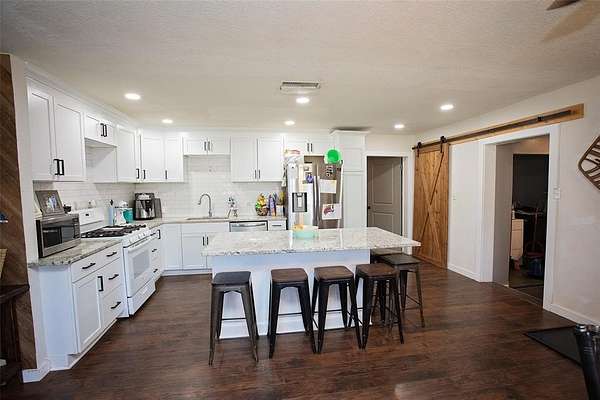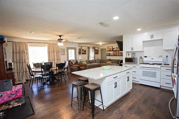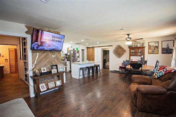 Welcome to your perfect blend of comfort, charm, and country living! Nestled on 2 beautiful acres, this 3-bedroom, 2-bath home offers the ideal setting for those seeking space, functionality, and a touch of farmhouse style. With an additional bonus room that can serve as a home office or optional 4th bedroom, this home easily adapts to your needs.Step inside to an inviting open concept layout filled with natural light, creating a warm and airy atmosphere throughout. The bright kitchen is truly the heart of the home, featuring a large island, granite countertops, and plenty of room for gathering, cooking, and entertaining. The farmhouse inspired design carries throughout, offering both style and comfort. Just off the carport, you’ll find a charming mudroom, perfect for kicking off boots after a long day and keeping everything organized. The spacious bedrooms provide comfort and privacy, while the thoughtful split floor plan separates the primary suite from the guest rooms. The guest bathroom is designed with convenience in mind, offering a separate tub and shower along with extra storage space. Meanwhile, the primary suite is a relaxing retreat featuring a large tiled shower and beautiful natural lighting. Outside, enjoy peaceful mornings or relaxing evenings on the covered patio overlooking the property. The land itself is a standout feature, complete with mature trees and a storage room. Property offers both beauty and tranquility. With plenty of space to roam, this property is perfect for those dreaming of a little farm life, whether it’s raising chickens or simply enjoying the wide-open space. This property offers the perfect combination of modern updates, including updated siding and a durable metal roof, along with the charm and freedom of country living. Don’t miss your chance to make this slice of peaceful, rural lifestyle your own!