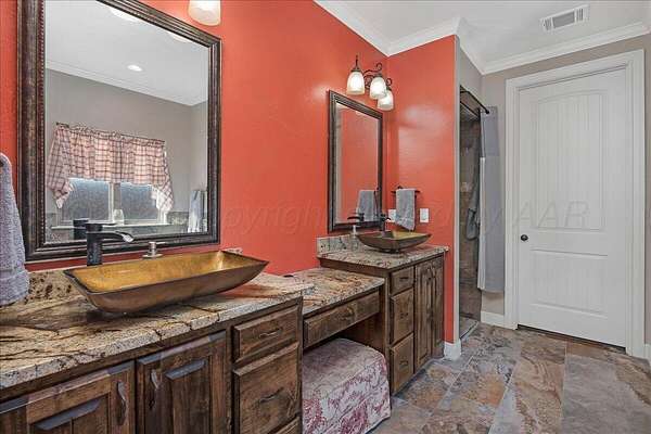 New Price-New Flooring-check out new pictures..motivated seller! Outstanding home on 3 acres in The Canyons. Custom, one owner 2 story classic with lots of extras. MOTHER IN LAW QUARTERS w/ full bath, kitchenette w/private entrance from garage. Relax in the backyard oasis under the stars in a HEATED IN GROUND POOL. Granite and stainless appliances adorn the kitchen. 2 living areas one down & one upstairs. Ground floor owners suite offers spacious area with walk in shower separate soaking tub and a spacious walk in closet, adjacent laundry room with sink. 3 roomy bedrooms and 2 bathrooms upstairs. Oversize 3 car garage. Backyard patio/recreation space enhance the pool area for grilling and chilling in style. Gated community peace of mind with easy access to Canyon & Amarillo. * Per seller new class 4 shingles completed Oct 2025. River Falls Refuge access available. Seller offering 3k in closing cost help The Canyons Website for all the information pertaining to our development & HOA