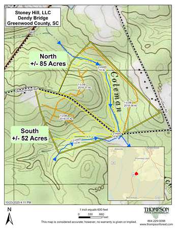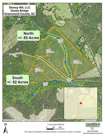 Approximately 52 acres of land with excellent road frontage and topography only a short drive from Uptown Greenwood and Self Memorial Hospital. There is a significant stream to the rear of the property. 7+ year old planted pine make for good trails and future timber income. This area is very quiet and surrounded by large timber tracts. A conservation easement allows construction of a residence and a pond (Please look at our topographic map for this pond site!) and perpetual use of the property for timber, agriculture, and livestock. Make plans for the new pond along with buildings needed for supporting timber, agriculture and livestock. Acreage will need to be verified by surveyor. Portion of Greenwood tax parcel 6821-865-083