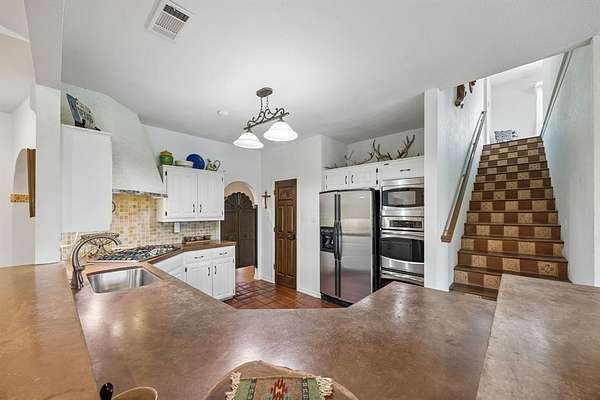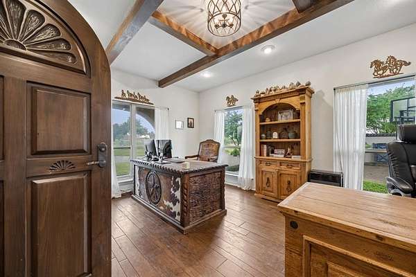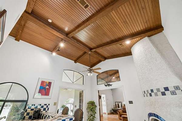 Welcome Home to your EXPANSIVE SPANISH HACIENDA on 12 gorgeous, Equestrian Acres!! Just minutes from restaurants, shopping & entertainment, you feel like you have left all the busy behind & have gone to your retreat in the country! Serene, Private, Tranquil...HOME! Rustic warmth & authentic finishes, this Hacienda offers a privately gated, fully fenced property with 6278sqft, 5+bedrooms, 6 bathrooms, *dual master suites*, every bedroom has an ensuite, 2+ kitchens, 2 offices, sauna, multiple dining & living areas... the quintessential, perfect home for MULTIGENERATIONAL LIVING with room & space for all your needs! All 1 level except for an upstairs suite that has a balcony, bedroom, cozy living room, what could be a kitchenette, full bath & currently a media room that could be an office, gaming room or nursery. Outside for your enjoyment is a huge pond, heavily wooded and also cleared for your horses, donkeys, chicken, etc, 2 courtyards...1 with ample parking for whatever your needs & the other houses a large refreshing pool, al fresco dining, FP, entertaining, soaking in the beauty of your property! Gorgeous views, Gorgeous sunsets! Originally built in 1987 and then completed in 1990, this home has many timeless features...and leaves room for you to put YOUR stamp and shine on it! Original Clay roof was replaced 3 years ago with a clay-looking metal roof! Kitchen has gas range, SS Double Ovens & built in microwave. This is a home that has to be experienced in person! Being offered in Full with 12 acres at just $1.575M, or with approximately 6-7acres at just $1.2M, with 5ish acres to be subdivided at just $475k. Many choices on how you want to acquire this incredible & unique property! *Prices reflect room for updates, shining it up, work that you might want to do. It is a work of art that just needs to be brought back up to its sparkle!* Nothing else like this in Rockwall & in a sought after, Gated, Equestrian Neighborhood. Contact Listing Agent with questions!