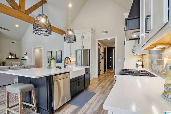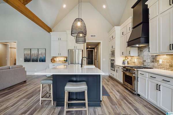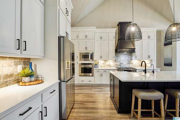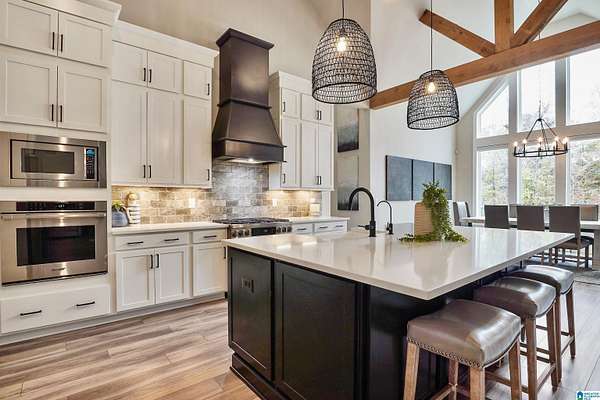 If you desire privacy and luxury mixed with a vacation getaway feel, this is the home for you. This premium lot is nestled in a quiet cul-de-sac on almost 4 acres in the coveted Landing Estates of the Blackridge gated lake community, with all the amenities you deserve. The prime location within Hoover is close to all the schools, shopping, and conveniences you need. Boasting highlights like a completely private fenced-in backyard with saltwater pool/waterfall, 4 car garage with upgraded flooring and extra parking, 2 master bedrooms on the main level plus an office, whole house water filter & reverse osmosis drinking water system, tankless water heater, shutters throughout with remote control shades on the back windows, full security system, surround sound speakers throughout, and outdoor lighting...this home has it all. Lastly, you can be sure your investment is safe, as this home has already appraised for the sales price. Welcome home!