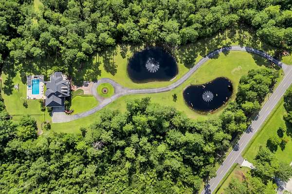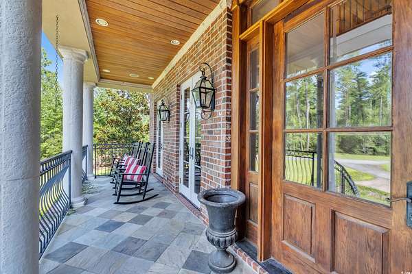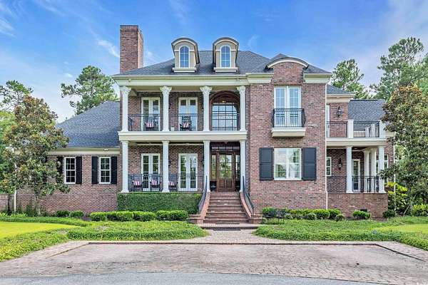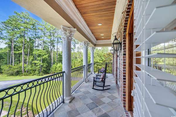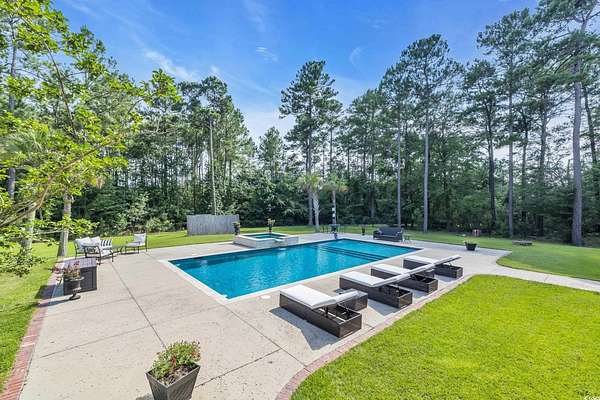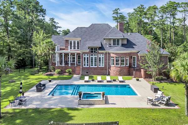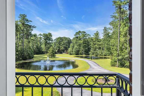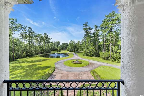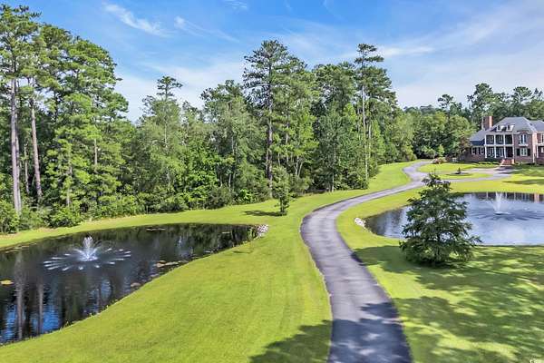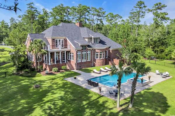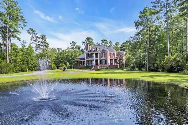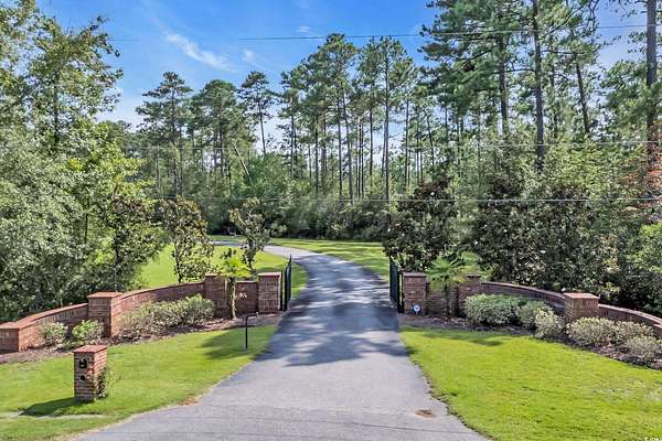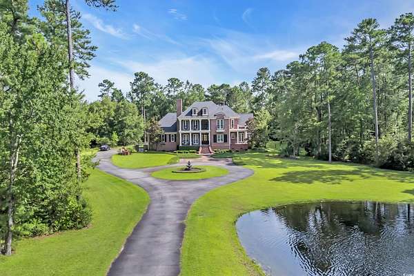 Sprawling home estate on more than 21 acres, only 30 minutes from the beach in Loris, SC. This gorgeous, 4 bedroom, 4 1/2 bathroom, brick custom home was built in 2007 with top-of-the-line craftsmanship and materials. Tremendous curb appeal as you enter through the wrought iron gates and brick entrance passing by the two stocked ponds with fountains in both. Surrounded by woods with lots of privacy and ample lawn space. Large, heated saltwater pool with tanning ledge, hot tub, and waterfall with open patio area with lots of space to entertain, gorgeous landscaping, asphalt drive and circle driveway with large brick paver parking area. The exterior of the home consists of brick walls, decorative columns, stucco accents and 7 expansive tiled balconies with wrought iron railings and gas lanterns on front porches. There is private side access to the 3-car garage, well-kept grounds, and a fenced in yard. Beautiful brick steps lead to the custom wooden entry door. It continues inside with so much attention to detail with custom accents, wood flooring, custom tile, soaring upgraded ceilings throughout with tray/co?ered/wood, every door is custom made for its space, high end windows and doors, formal dining room, sunroom with brick wall and wood ceiling, large living room with huge windows overlooking backyard and pool, propane fireplaces in living room and o?ce with a gorgeous wood hearth, built-in bookshelves, beautiful molding everywhere, wide baseboards, extra-large crown molding, extensive window/door casings, rounded sheetrock corners, interior brick accents, separate o?ce with double doors and built-in wood shelves, custom window treatments, granite countertops throughout, tile backsplash, custom cabinetry with high end appliances, Sub-Zero refrigerator, Wolf gas stove, double ovens, pot filler, range hood, in-cabinet freezers, ice maker, walk in pantry, huge chandelier at foyer with push button lowering for cleaning, large primary suite with access to backyard, sitting area, nice primary bathroom, walk-in tiled shower with multiple shower heads, double sinks, jetted tub, huge primary closet with custom shelving, uplighting in tray ceiling, wood steps with multiple access points with nice spindles going upstairs, large secondary bedrooms with walk in closets, laundry room with cabinets and a sink, fully encapsulated extra-large crawlspace with so much available storage space. This exquisite property has it all with so much detail inside and out!