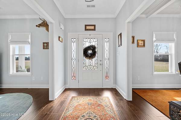 This is the one you've been waiting for! Welcome to your dream homestead on 2.28 acres of serene countryside. This custom built home has so much to offer and has been so very loved! As you get to the property, you'll drive up the long gravel driveway through the hedgerow up to the house. The house features white dutch lap siding, black shutters, gutters, and full landscaping around. In the spring, gorgeous hostas, day lilies, purple heart, lantana, gold cypress bushes, loropetalum bushes, butterfly bushes, loropetalum tree, and more will be in full bloom adding color all around the home! In the back yard, you'll find a spacious garden that is usually full of squash, zucchini, cucumbers, peppers, corn, beans, tomatoes, okra, carrots, onions, strawberries, and potatoes! The garden is partially surrounded by a chicken run and chicken play area with homemade swings for your chicken friends. The property offers a private well for the barn and garden area, while the house is connected to county water. There will be a 25x25 concrete slab with all utilities in place waiting for your new barn or shop dreams to come to life, along with a 30amp camper hook up ready for your use! It gets even better inside the home with 3 spacious bedrooms on a split floorplan, 2.5 bathrooms, engineered hardwood and tile floors throughout, along with an unfinished bonus room off the garage, offering ample storage! You'll love the open feel this home has with a vaulted ceiling in the living room and an abundance of natural lighting shining through. The kitchen is equipped with leathered granite countertops, barstool seating, and stainless steel appliances. The formal dining area is right off the kitchen and offers coffered ceilings adding to that custom home charm! The primary suite is it's own private retreat and offers a walk in tiled shower, two walk in closets, a soaking tub with tile surround, dual vanity, and a water closet with pocket door! You have to come see this one for yourself!