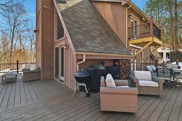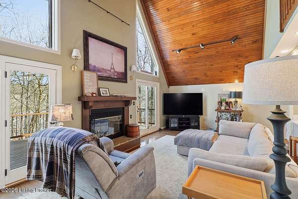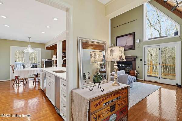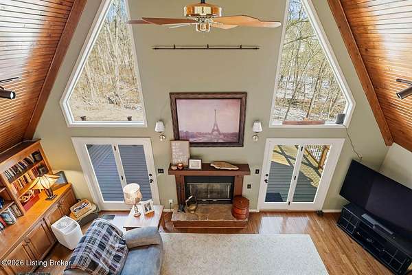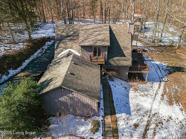 Experience the peace and privacy of country living with this exceptional 4 bedroom, 3.5 bath home nestled on nearly 9 acres of beautiful wooded land. Tucked away in a serene setting, a long, tree-lined asphalt driveway welcomes you home and sets the tone for the seclusion and natural beauty that surrounds you. Step inside to an impressive open floor plan highlighted by soaring vaulted ceilings lined with warm wood in the dramatic two-story living room. A stunning fireplace, flanked by floor-to-ceiling windows, frames picturesque views of the surrounding landscape and fills the space with natural light. Built-in bookcases add charm and character, while the seamless flow into the kitchen makes this home ideal for entertaining. The kitchen was thoughtfully remodeled in 2024 and features stainless steel appliances, crisp white cabinetry, and a countertop with seating - perfect for casual meals or gathering with guests. The main level offers two bedrooms, including a spacious primary suite complete with a private en suite bathroom. You'll also find a convenient powder room and laundry room on the first floor. Upstairs, a versatile loft area provides the perfect space for a home office, reading nook, or flex area to suit your needs. Two generously sized bedrooms and a full bath complete the upper level, with one bedroom offering access to a private balcony - an ideal retreat to enjoy the peaceful surroundings. The finished walkout basement is designed for entertaining, featuring a large living area, a full bathroom, and direct access to the covered deck, extending your living space outdoors. Sellers have made numerous upgrades, including improvements to the deck, lighting, kitchen, driveway, HVAC, and more (see seller's disclosure for details). If you've been searching for a private retreat with modern updates and room to roam, this remarkable property is a must-see. Schedule your showing today!