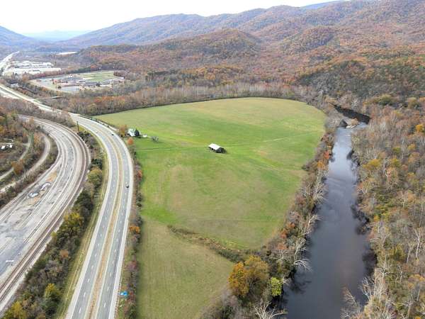 Prime real estate listing featuring a property ready for development located along Interstate 64 corridor in the Low Moor area of Alleghany County, Virginia. This property, known locally as the Irvine Farm, is situated in western Virginia at Mile Marker 22.8 on Interstate 64 approximately one mile from from Exit 21 Low Moor interchange. Interstate 64 is the major east-west highway artery running through the Alleghany Highlands area providing good access to many important population centers in the eastern United States. The Irvine Farm is a legacy property that has been owned by the same local family for approximately 175 years and has never been available for development. This exceptional property contains 68.50 acres of land offering a wide range of possibilities from industrial and commercial development with proper zoning change to mixed use with proper zoning change to mixed use with upscale residential. This tract of land is arguably among the best sites available for future development in the Alleghany Highlands with many desirable physical characteristics including high visibility from Interstate 64, very agreeable topography and stunning views of the surrounding mountains. This mostly open property lies inside a large horseshoe bend of the Jackson River with Interstate 64 for the whole southern boundary. Access is provided off the end of Irvine Farm Road (State Route 735). Improvements to the property include a historically significant two two story farmhouse circa early 1800's and a frame barn. Most public utilities are on site or nearby. The current zoning by Alleghany County is M-1, industrial District. The property is centrally located in the beautiful Alleghany Highlands between Covington and Clifton Forge near the Alleghany County Governmental Complex, LewisGale Hospital Alleghany and Love's Travel Center. The area provides easy access to the Alleghany Highlands YMCA, Mountain Gateway Community College and Mountain View Elementary School. Renowned upscale resort amenities are nearby at The Omni Homestead Resort and The Greenbrier which is less than and hour drive away. Business development and tax incentive programs could be available to assist in the future development of this property. A new survey plat and other property details are available upon request. Broker participation is welcome. Shown by appointment only.