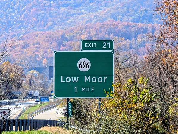 Exit 21 off Interstate 64 at Low Moor to end of State Route 735 (Irvine Farm Road).