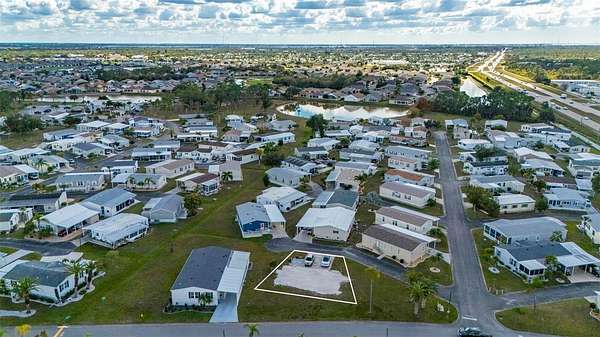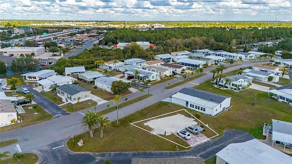 Large vacant lot located in a desirable 55+ manufactured home community, ideally positioned at the front of the park in a prime location. This community is not in a flood zone, offering added peace of mind. The lot is ready for your new home with electric, water, and sewer hookups already in place. Additional features include a two-car parking driveway, a 10x10 concrete pad for a shed, and a layer of dirt already provided by the home movers, saving time and expense. Conveniently located near shopping, dining, entertainment, fishing, several elite golf courses, and Florida's beautiful blue beaches, this lot offers the perfect opportunity to enjoy the Florida lifestyle.