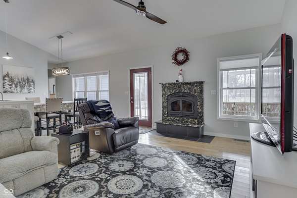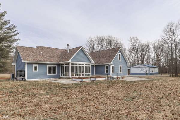 Enjoy easy rural living in this 12+ acre property with home, pole barn, and two aerated ponds. The 2950 SF Home was built in 2018. The 2500 SF pole barn outbuilding was built in 2020. Home includes 3BR and 3BA, and features tons of windows for natural light and picturesque rural views. Open-concept Great Room, Kitchen, Dining Area features Cathedral ceilings, beautiful hardwood floors, and an EPA high efficiency wood burning fireplace. Kitchen has a spacious pantry, soft-close cabinets, and numerous other touches. Home also features a separate formal Dining Room, Private Office with French Doors, a Master Suite, a guest bedroom with its own bath, a 3rd bedroom, and a 3rd full bath. The Master Suite has huge double closets and a roomy bath with double sinks. Stair access goes to an additional 500-sf upstairs, currently used as office/studio and storage space. Aeration lines run into both ponds, with air supplied by electric pump or the 13' windmill. Out-building is a Graber Post Building (40' x 64') w/ high strength poured concrete and spray foam insulation, a 10' x 32' covered porch, and two slide doors (12' x 12'). A sectioned-off back part of the building is heated and cooled to include a Workshop w/ 6' x 8' interior roll up door, a Craft Room with storage, and a full bath with shower. See Property Profile in Downloads for details.