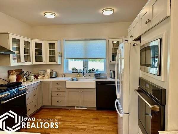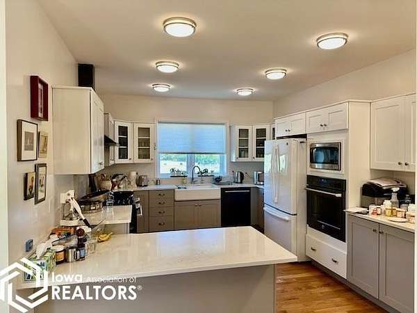 Discover the perfect blend of comfort, style, and functionality in this stunning single-level home designed for modern living. Featuring 3 ensuite bedrooms, an additional 4th bedroom currently being used as an office, a half bath for guest use, plus a meditation room. This home offers versatile spaces to fit your lifestyle. Enjoy the serene outdoors from the screened-in porch, overlooking the expansive backyard complete with a large storage shed for all the extra yard equipment. Sustainability meets convenience with two solar arrays providing energy efficiency and lower utility costs. Car enthusiasts and hobbyists will appreciate the two separate garage stalls, each with extra space, one with a built-in sink, and ample storage for tools and projects in both. A spacious flex room connects both garages-ideal as a family room, a project studio, game room, or additional storage area. Located just steps from campus, the tennis courts, and one block from the Waterworks Park and local swimming beach. This property also offers excellent access to the Jefferson County Trail System for walking, biking, and outdoor recreation just up the street. Experience single-level living at its finest in a home that balances tranquility, practicality, and proximity to all the best local amenities.