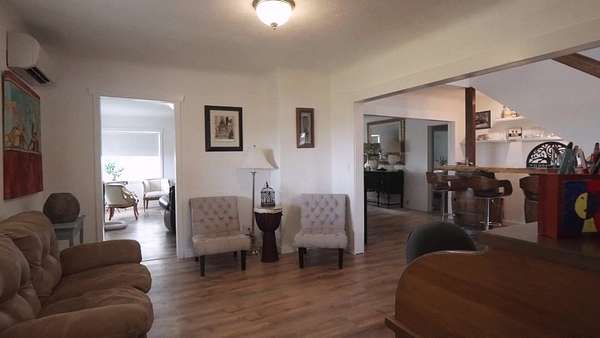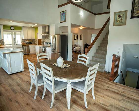 Water is delivered through the Wapato Irrigation Project, which holds senior water rights, utilizing 10-horsepower pumps at an average annual cost of approximately $4,000+-. Structural assets include a remodeled primary residence and a smaller rental or manager's home. The main home totals 2,890+- square feet of finished living area with three bedrooms and one bath upstairs, two bedrooms and one bath on the main level, plus 1,100+- square feet of unfinished basement space. The home is heated and cooled by new ductless mini-split systems, offering year-round comfort.
