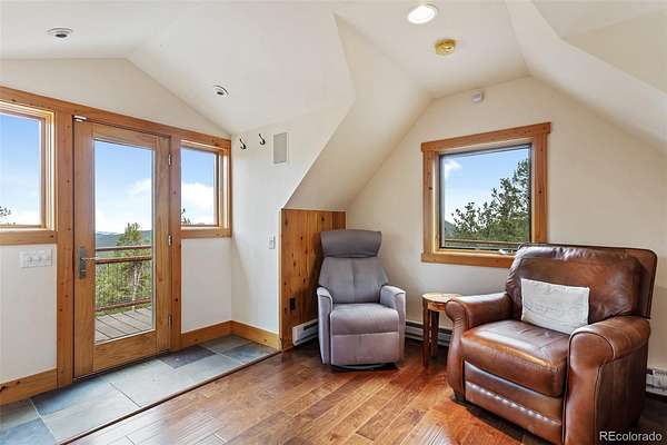 - Primary Suite: Featuring gleaming hardwoods and French doors that open to the expansive alpine landscape.