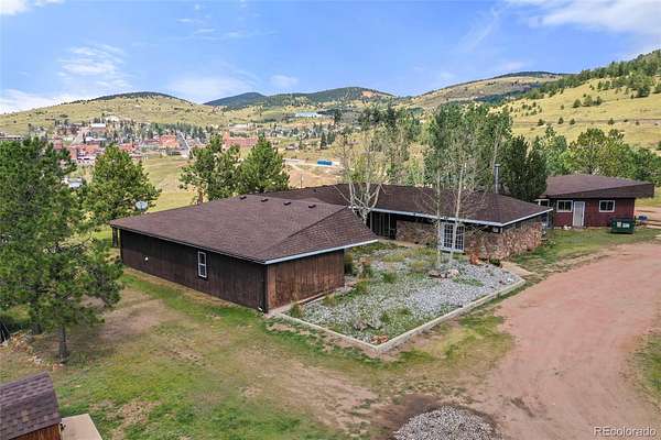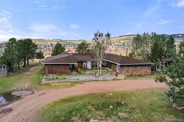 Let's talk about one of the most unique properties around the charming town of Cripple Creek! Perched atop 3.9 acres, this home is located within walking distance of downtown, and yet, provides plenty of privacy just outside of city limits. Coming in at over 4,000SF of living space, the possibilities are truly endless with this one!8 bedrooms, 6 bathrooms, 3 laundry rooms, 3 living areas, a kitchenette and a large living/dining area give you an abundance of opportunity. Each bedroom has its own exterior entrance with an electronic deadbolt, perfect for customizing each code and tapping into income potential. No carpet anywhere in the house with several areas that have had new flooring installed. There are 2 wood burning stoves in the house, providing comfort and efficiency in the common living areas. As a nice bonus, there is a detached 3 car garage and 3 storage sheds on the property. The large roundabout driveway makes for plenty of parking. Other features: 2 new furnaces and 2 new hot water heaters have been installed in the last 6 months, a new roof, gutters and garage door were installed in April 2024. And did I mention how amazing the views are!? Now the real question is, what will YOU do with this one-of-a-kind opportunity!?