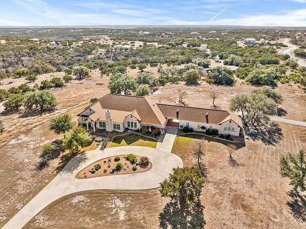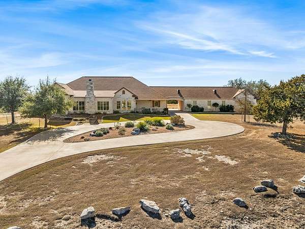 This sprawling one-story custom stone home sits on 4.33 acres of natural beauty, offering privacy, space, and refined comfort. A four-car garage with a porte cochere, circular drive, and dual driveway entrances creates an impressive arrival, while the expansive front porch invites slow mornings and quiet evenings. The screened porch, featuring a wood-burning fireplace, opens onto a stone patio that's perfect for stargazing under the wide Texas skies. Inside, the home features formal living and dining rooms, a bright breakfast area, and a second living space. The oversized kitchen centers around a massive island, ideal for gathering, cooking, or entertaining. Four spacious bedrooms provide ample space for everyone, and the dedicated office features custom-built-in gun cabinets. A huge laundry room with a built-in desk and abundant storage adds everyday convenience. From extensive built-ins to numerous storage closets, this home is designed to keep life organized without sacrificing style. Plantation shutters, all tile floors, neutral colors, and the one-story design make this home a must-see!