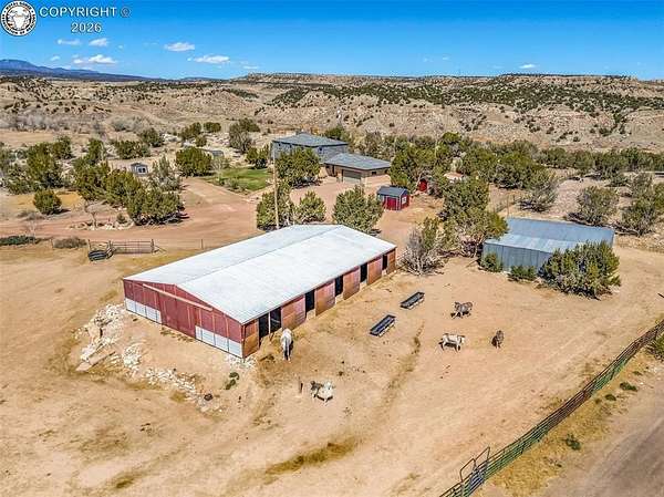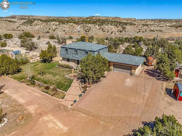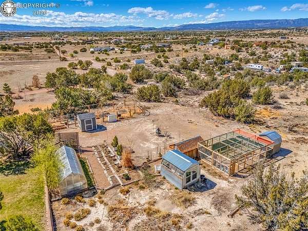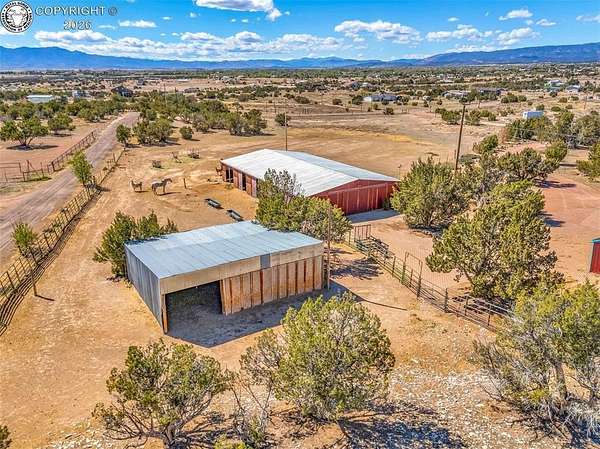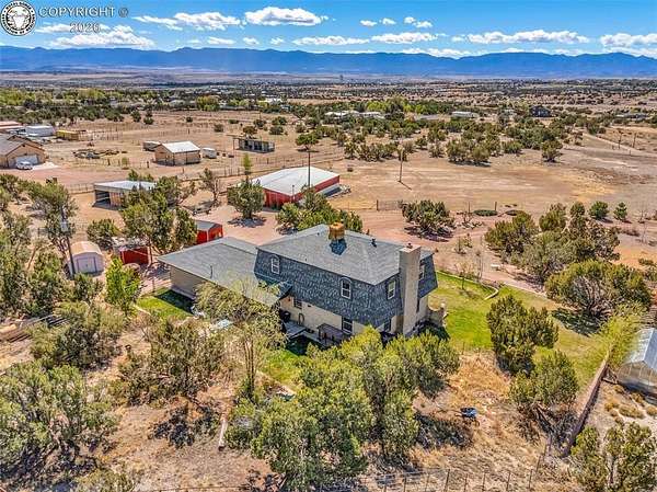 Set on 9 acres in Penrose, this spacious 2-story home offers a rare blend of square footage, usable land, and flexibility for a variety of lifestyles. Featuring 4 bedrooms and 4 bathrooms across 3,455 finished square feet, the layout provides separation and functionality with multiple living spaces. The upper-level primary suite is generously sized and includes an adjoining bath, walk-in closet, expansive views and a fireplace-an uncommon and inviting feature. The kitchen is upgraded with solid surface countertops, new appliances and provides ample storage throughout. The fully finished basement expands the living options with a spacious living room, an additional bedroom, bathroom, wet bar or kitchenette, and storage space-well-suited for guests, extended living, or entertaining. Outside, this operational ranch is zoned to allow horses and other animals, mature trees, fruit trees fencing, large Port-A-Stall barn, loafing shed, 2 chicken coops with separate runs, green house, potting shed, tool shed and 2 additional storage sheds. Along with ample parking for RV, boat or other outdoor toys and a 2-car attached garage, this property is a dream come true. In addition the sunrises and sunsets are absolutely breathtaking! The acreage provides room to spread out while still maintaining accessibility to Canon City, Florence, Pueblo and Colorado Springs. With a beautiful home, generous square footage, and acreage in a rural setting, this property presents an opportunity for buyers seeking space, flexibility, and long-term potential.