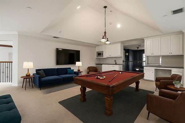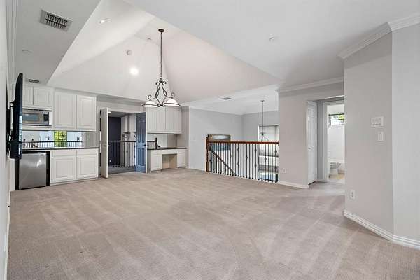- Built-In Features, Built-In Wine Cooler, Cable TV Available, Chandelier, Decorative Lighting, Double Vanity, Dry Bar, Eat-In Kitchen, Granite Counters, High Speed Internet Available, Kitchen Island, Loft, Multiple Staircases, Natural Woodwork, Open Floorplan, Pantry, Sound System Wiring, Vaulted Ceiling(s), Walk-In Closet(s), Wet Bar