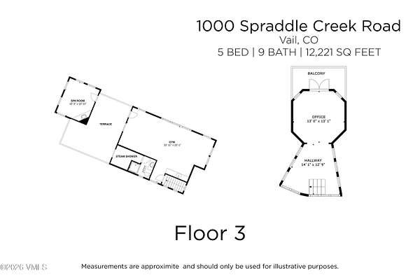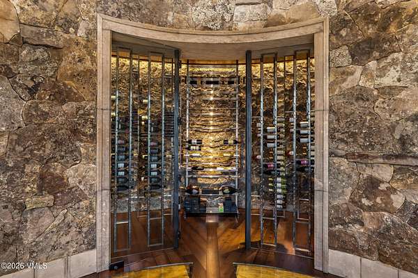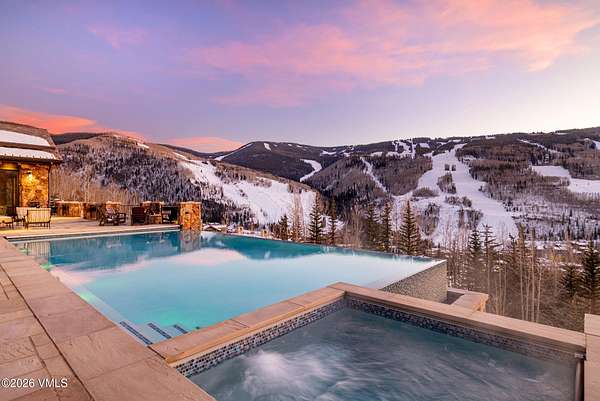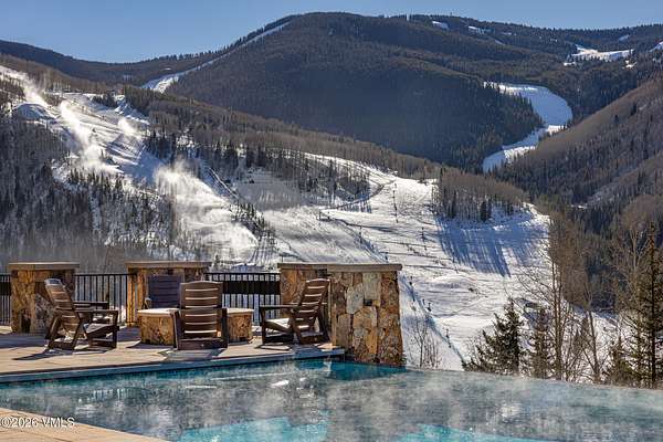 A rare opportunity in Spraddle Creek, Vail's most exclusive gated enclave, this extraordinary mountain estate is a triumph of privacy, scale, and setting. Bathed in all-day sun, the residence commands sweeping, unobstructed panoramas of Vail Mountain from virtually every room, creating a seamless connection between refined interiors and the surrounding alpine landscape. Spanning more than 12,000 square feet, the home unfolds as a series of thoughtfully curated living experiences, offering five bedrooms, nine baths, an office tower, private movie theatre, expansive fitness and wellness suite with steam shower, glass-enclosed wine cellar, craft room, elevator, and a detached massage hut. Architectural details and generous volumes elevate each space, while walls of glass frame the views as living art. Designed for both grand entertaining and intimate retreat, over 2,900 square feet of heated outdoor living distinguish the property. A custom infinity-edge pool appears to spill into the horizon, anchoring a resort-caliber setting complete with fire pit, water feature, and pizza oven--an unmatched vantage point for sunsets over Vail Mountain. An oversized four-car garage completes this singular offering. Adding to the rarity of this offering is access to the Vail Passport Club, an exclusive, private, members-only ski club located at the base of Golden Peak. This coveted amenity provides ski valet service, mountainside parking, private lockers, direct mountain access, and a refined social and dining environment--an unparalleled convenience in Vail. Membership to this Signature Club is limited and currently closed to new applicants, further underscoring the exceptional nature of this opportunity. Timeless, private, and impossible to replicate, this Spraddle Creek estate is a legacy property and one of Vail's most coveted opportunities, where luxury, location, panoramic views, and elite ski access converge.