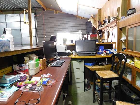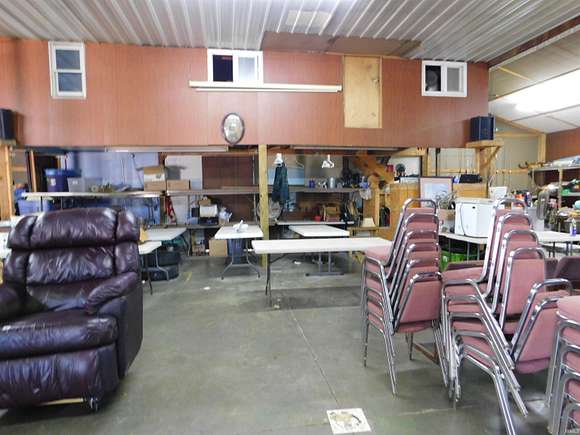 Property features 54x48 garage with 12x32 upstairs office, 2 -12' rollup doors, 1 service door, electric and water, natural gas is available. Flat to gently rolling with good building sites and ample road frontage and parking. The building has been well insulated.