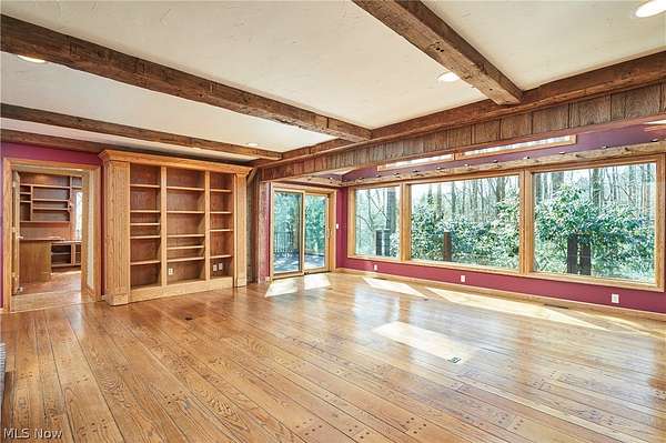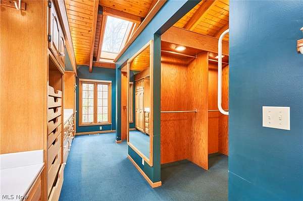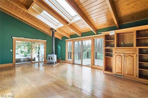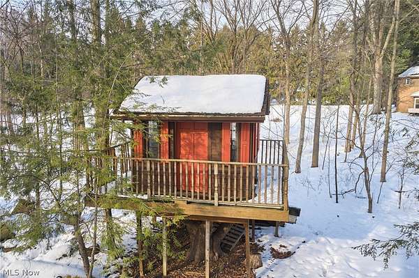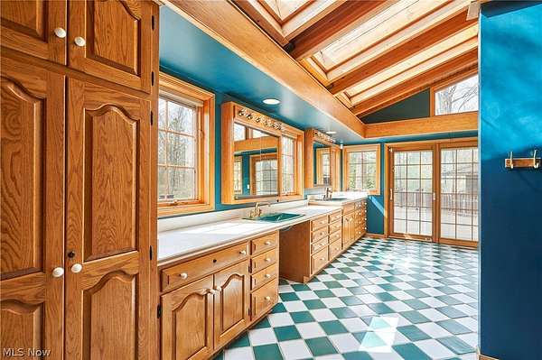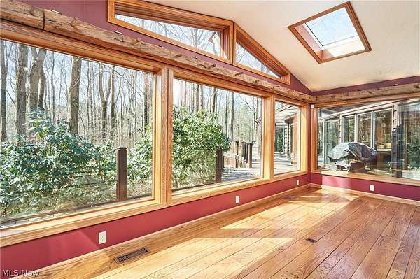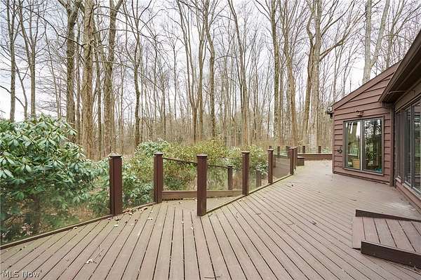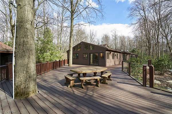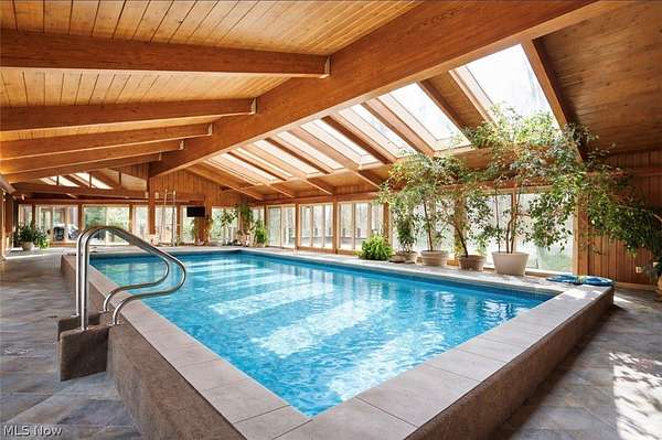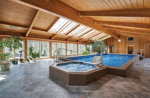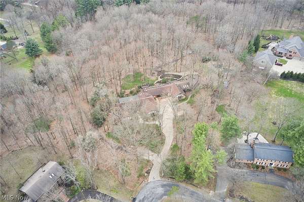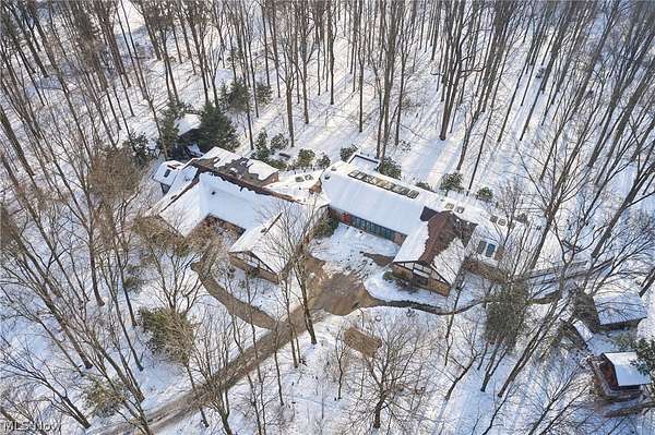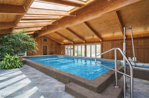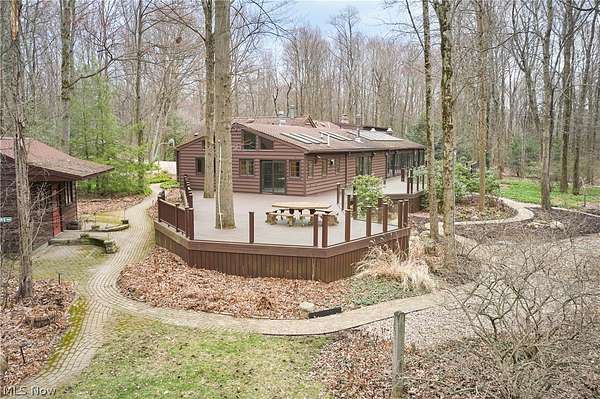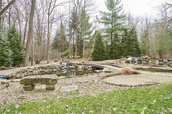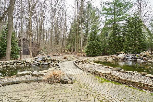 Located in the highly desirable Revere Schools and nestled in beautiful Bath, this distinctive property offers privacy, character, and a remarkable setting on over 3 wooded acres. A boulevard-style entrance leads to a quiet cul-de-sac where the home is tucked among mature trees, creating a peaceful, secluded feel. A brick paver drive introduces the home and continues through pathways leading to inviting outdoor spaces, including a charming bridge set between 2 tranquil ponds with waterfalls. The grounds also feature a large storage shed, woodshop shed, and treehouse. Inside, a welcoming foyer opens to a thoughtfully designed layout. The first-floor primary suite is filled with natural light and features a cedar closet, walk-in closet, and full bath with an updated shower. Nearby are 2 office spaces and an additional full bath. One office offers a vaulted ceiling and large window overlooking the wooded backyard, while the other showcases rich woodwork, custom built-ins, and sliding doors to the expansive deck and screened-in porch. The home offers 2 inviting living areas connected by a striking 2-sided fireplace, along with a dining room and kitchen ready for your personal touch while preserving its charm. Upstairs are 2 additional bedrooms joined by a Jack and Jill bath, each with its own vanity, and beautiful backyard views. One of the home's most exceptional features is the indoor swimming pool and hot tub area just off the kitchen. Surrounded by large windows, this space is filled with natural light and peaceful views. A changing room and full bath add convenience. Also connected is a spacious in-law suite with vaulted ceilings, dual sinks, a wraparound closet, and accessibility features. This suite has access to its own private 2-car garage, while another 2-car garage is located off the kitchen. Spanning nearly the entire back of the home, the deck features stunning glass railings and sweeping wooded views. This one-of-a-kind home has it all.