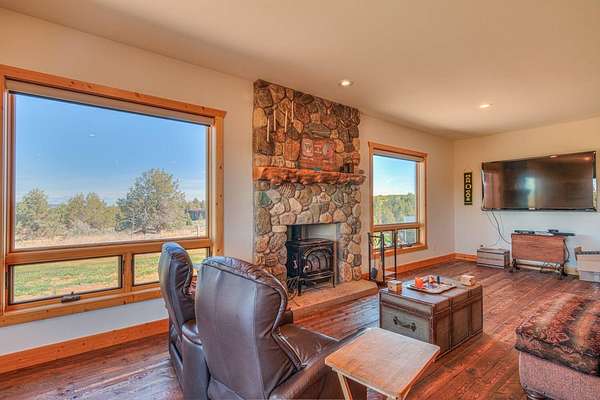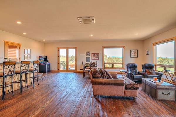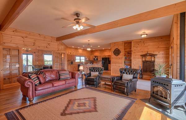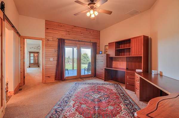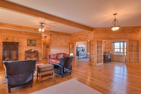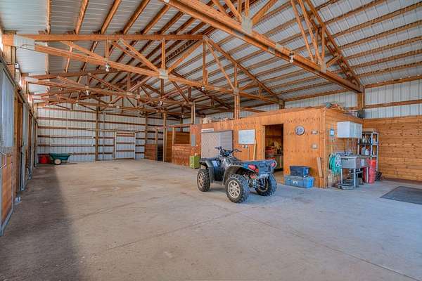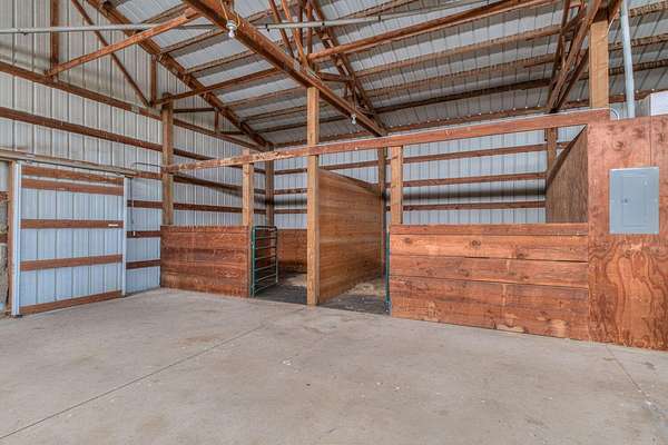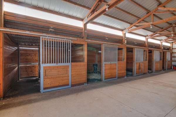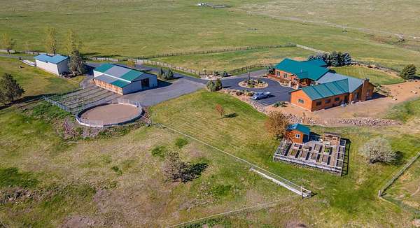 Set on an extraordinary 118 acres of pristine countryside (97 acres with irrigation rights) and situated 1,200 feet from the road, this remarkable equestrian estate offers unmatched privacy, natural beauty, and excellent facilities for horse enthusiasts and those seeking a refined rural retreat. The well-appointed equestrian complex features a spacious horse stable with seven stalls, five paddocks, tack room, wash bay, cold/warm water and indoor hay storage area. A round pen is located next to the stable and a horse trail is accessible directly from the property. The residence itself features numerous upgrades, including a turnkey recreation room that is wonderful for visiting guests, family or as a multi-generational living quarters. This vast property presents a unique opportunity to create a legacy estate, private training facility, or luxury rural escape unlike any other in the area. Please see the attached Features/Amenities supplement and video.