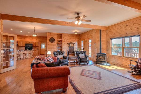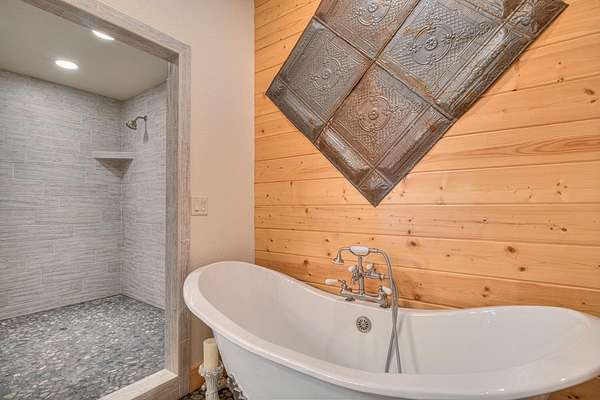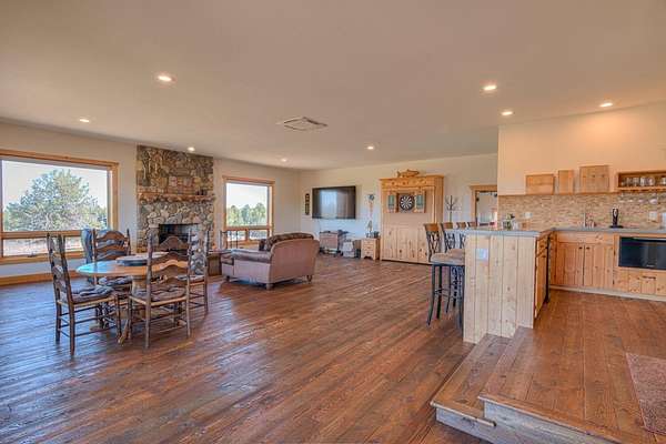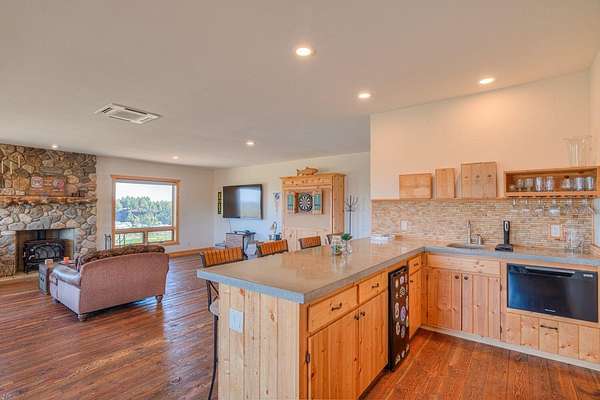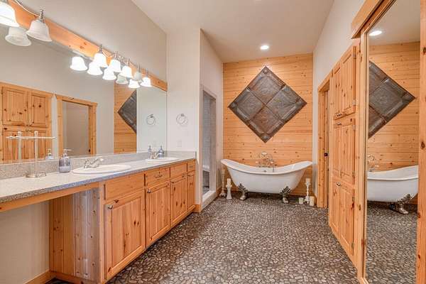 - Double Vanity, Kitchen Island, Open Floorplan, Primary Downstairs, Soaking Tub, Solid Surface Counters, Tile Shower, Walk-In Closet(s), Wet Bar