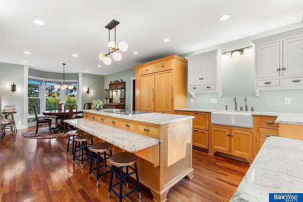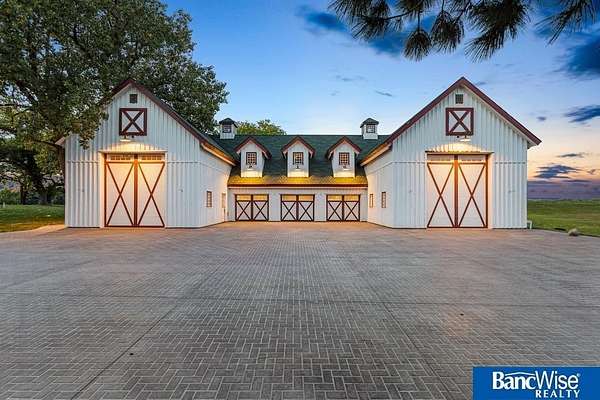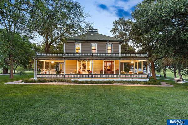 Welcome to an estate that's more than a home-it's a romance of history, elegance, and modern living. A rare find for modern buyers who appreciate timeless architecture. This extraordinary 7.5 acre estate offers 7 spacious bedrooms, 5 well appointed bathrooms, and thoughtful detail. Inside, the romance continues. Craftsmanship shines throughout the home's staircases, ceiling detail, lighting and four elegant fireplaces. Light pours into the stunning sunroom, a perfect retreat overlooking the one-acre pond. Every corner has been thoughtfully designed to balance old-world character with today's modern conveniences. A full kitchen/bar in the lower level offers options-entertaining in style or a private suite for family & guests. The Sand Creek barn has endless possibilities-weddings, events, horses, RVs, or shop space. This estate is unmatched luxury just minutes from south Lincoln. This property has the option to purchase additional 7 acres--inquire with listing agent.