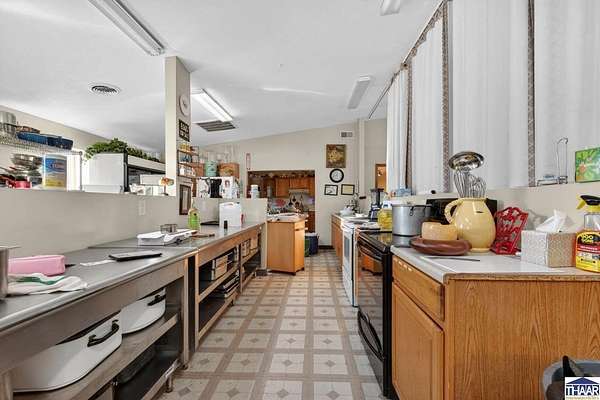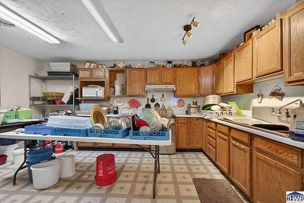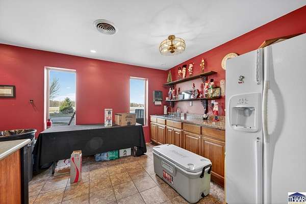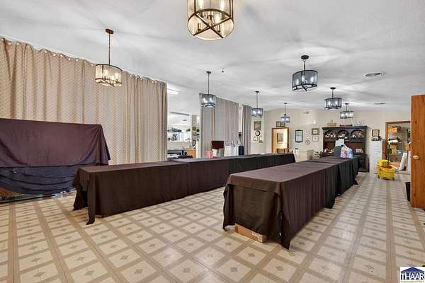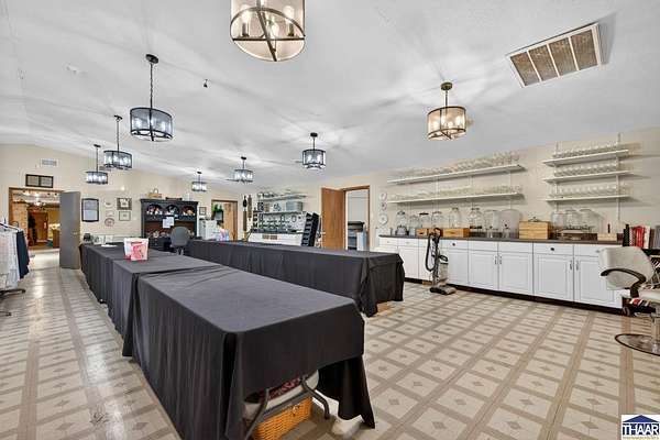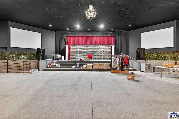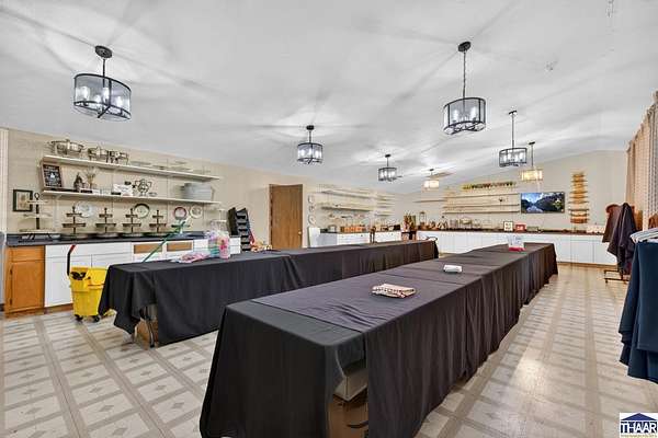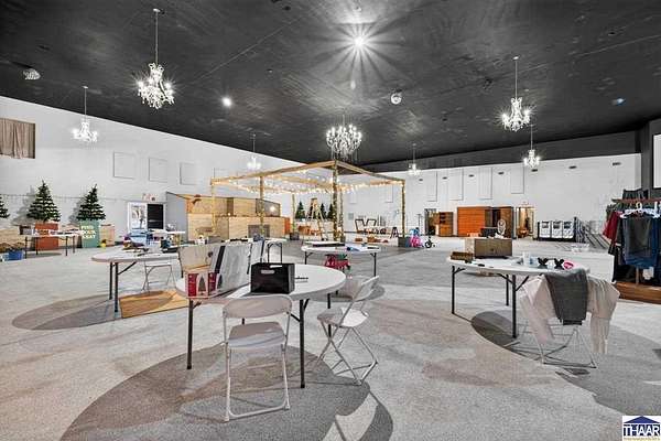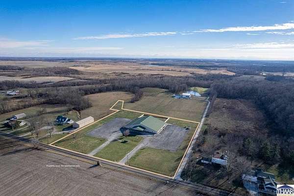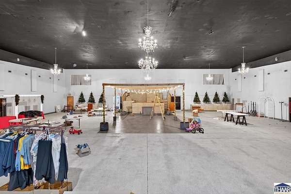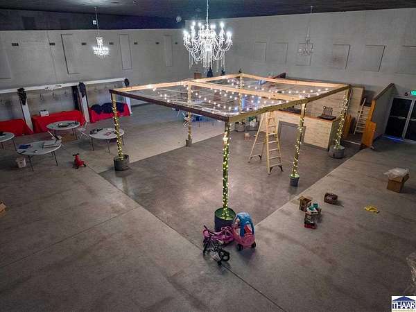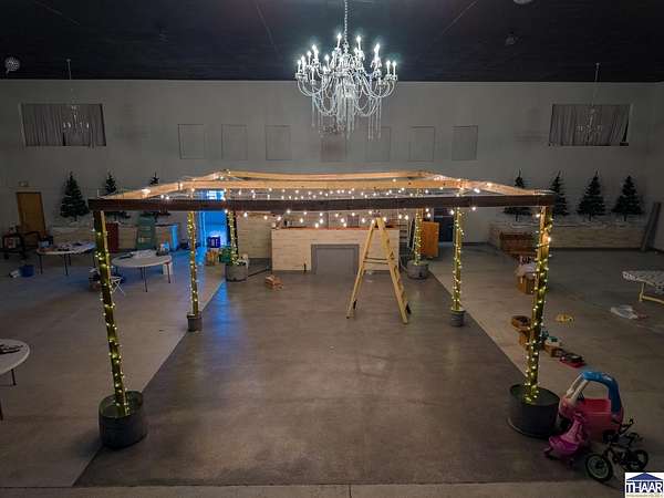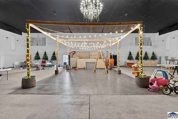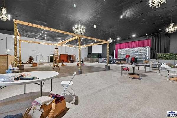 Endless commercial potential on 5+ acres. This 19,200 sq. ft. property offers outstanding versatility with 12 restrooms, approximately 150 parking spaces, and a covered front awning ideal for drive-up access. Inside, you'll find a spacious entryway leading to an expansive main hall featuring a large stage and elegant chandeliers, with multiple offices or classrooms positioned around the central space. The property includes a large commercial kitchen, plus a second kitchen currently being remodeled with new countertops coming soon. Additional highlights include a fenced-in backyard and a layout that supports a wide range of uses. Currently operating as an event venue, this property would also be well-suited for a church, warehouse, investment opportunity, or other commercial use. Located in a convenient country setting with easy access to State Roads 46, 40, and 42, this property offers both space and accessibility for your next venture.