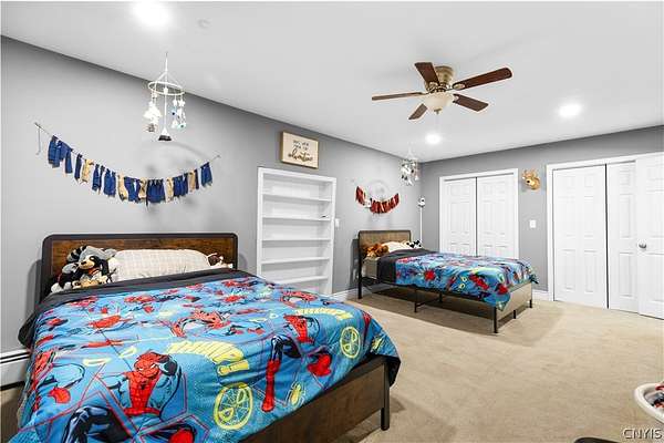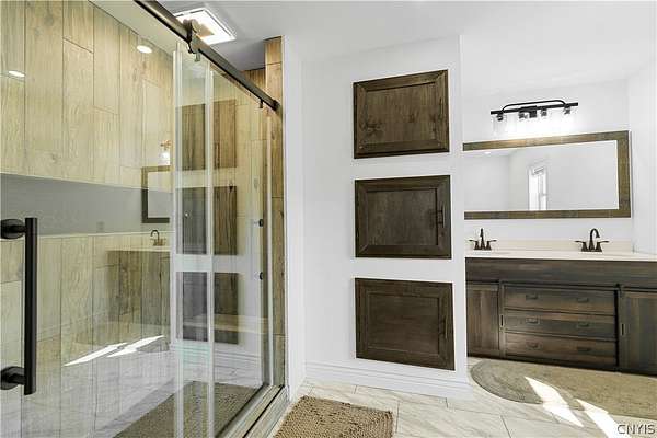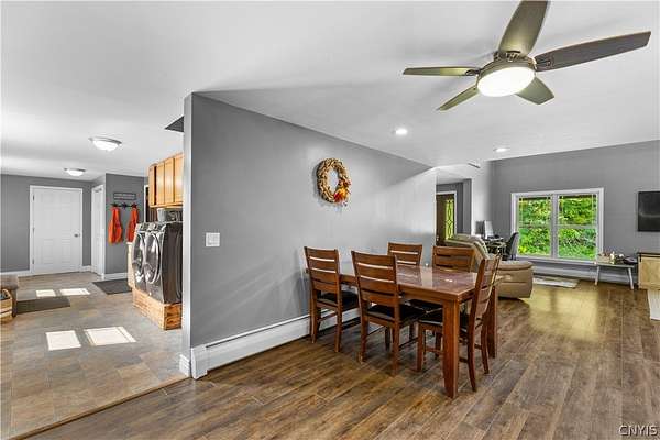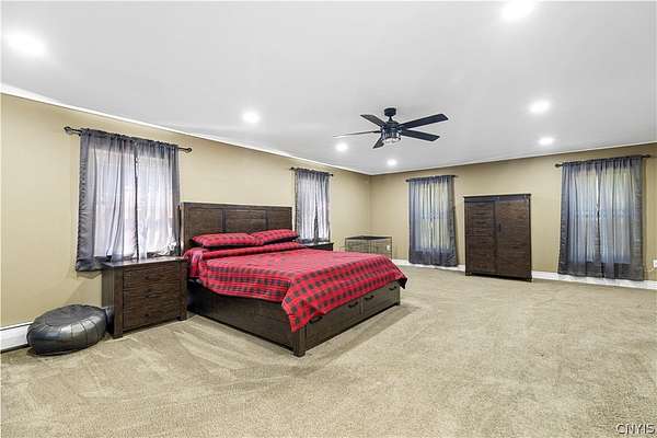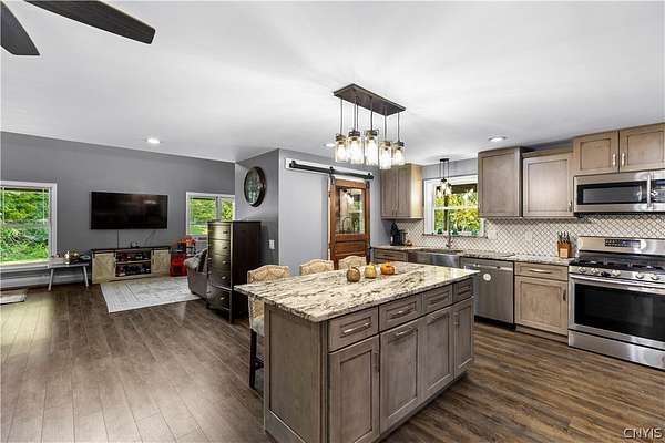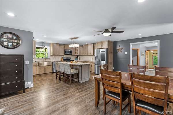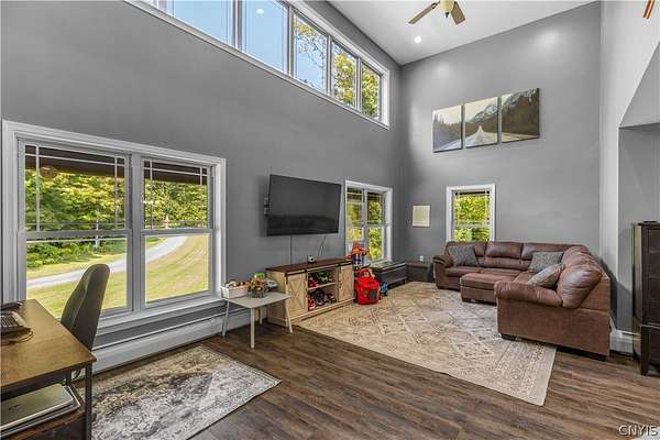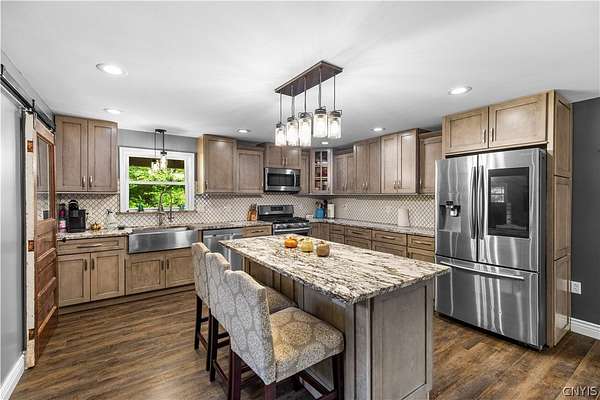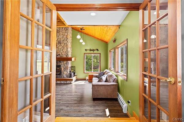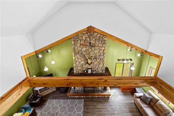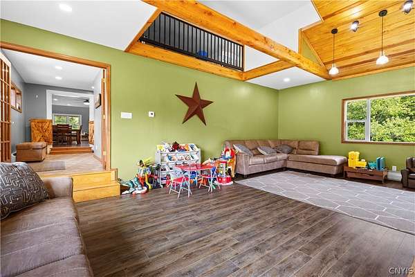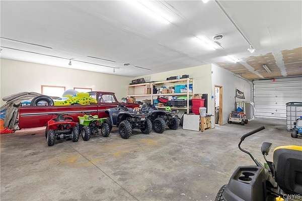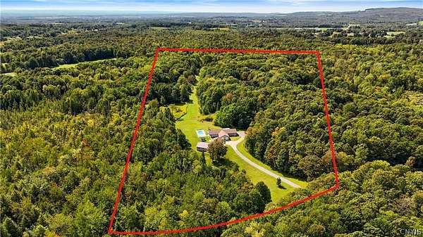 Gracefully located in the heart of the Remsen countryside, sits this recently renovated and updated 3,676 sq ft, 3-bedroom, 3.5 bath, 2-story home, offering the perfect blend of modern sophistication, rustic charm and 31.79 breathtaking acres. Step inside to discover a spacious open-concept layout with ambient shades of natural sunlight filtering throughout. You'll be captivated by the soaring stone fireplace in the great room, with tongue-and-groove pine creating a warm, inviting ambiance. The gourmet kitchen is a chef's dream, featuring granite countertops, a large island for prepping meals, perfect for entertaining or quiet family evenings in. Retreat to the luxurious master bedroom with ensuite bath- including an expansive walk in tile shower with elegant, modern finishes- the perfect place to unwind after a long day. With generously sized secondary bedrooms- one featuring a secret doorway and unique hidden passage that connects a bedroom to a loft-style playroom, adding a magical touch that kids (and kids at heart) will love. The show-stopping feature of this property is the ultimate 4,000 sq ft detached garage, is the perfect blend of mechanics dream and entertainment paradise complete with a full bar setup, pool house, car lift and bathroom facilities. Whether hosting summer gatherings, weekend getaways, or just enjoying your private oasis, this space elevates every occasion. Thoughtfully updated and impeccably maintained, this exceptional residence offers a truly move-in-ready experience where every detail has been cared for. With its timeless design, versatile spaces, and unmatched setting, the possibilities here are as endless as the views. Discover the lifestyle you've been dreaming of at 10003 Welsh District Road.