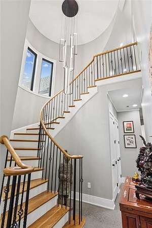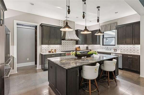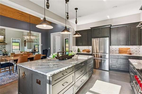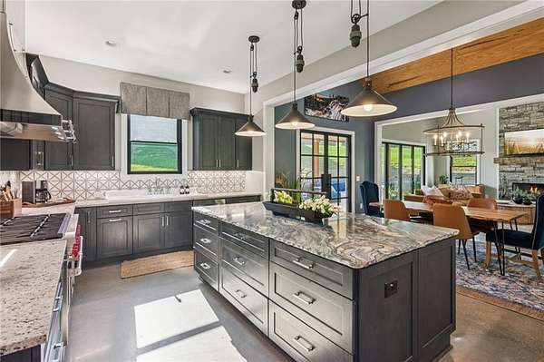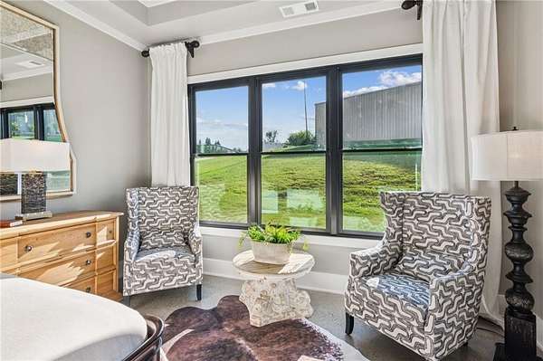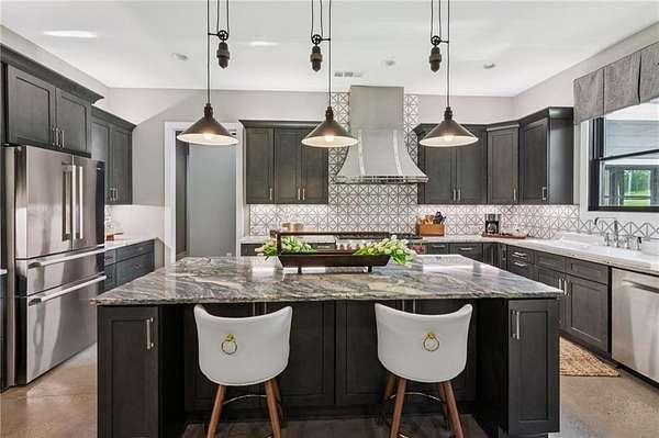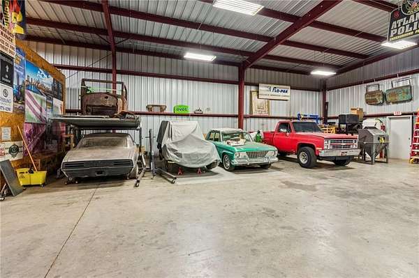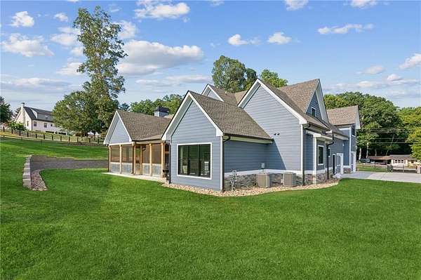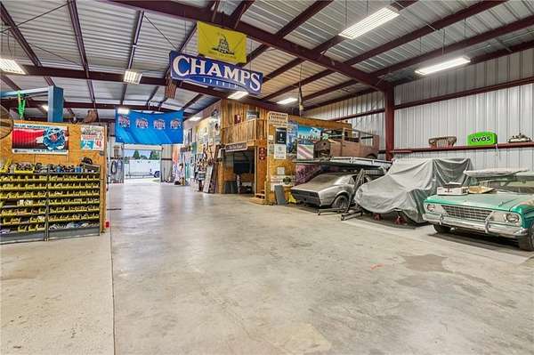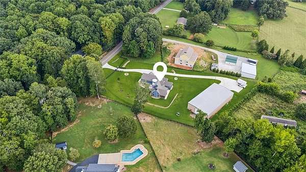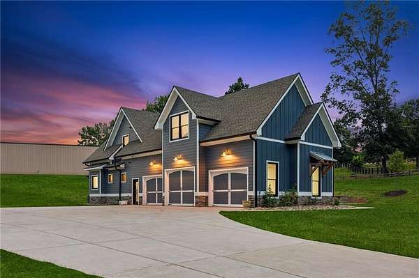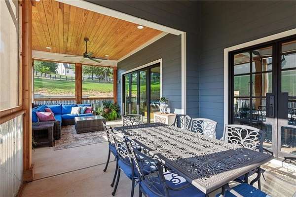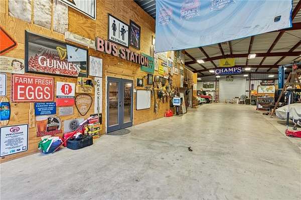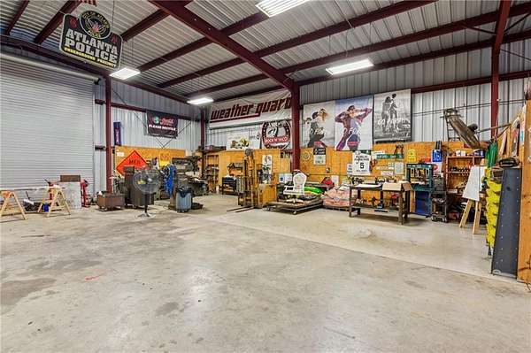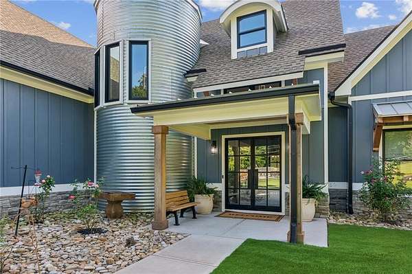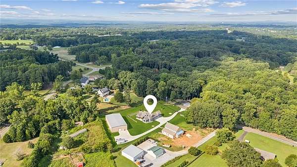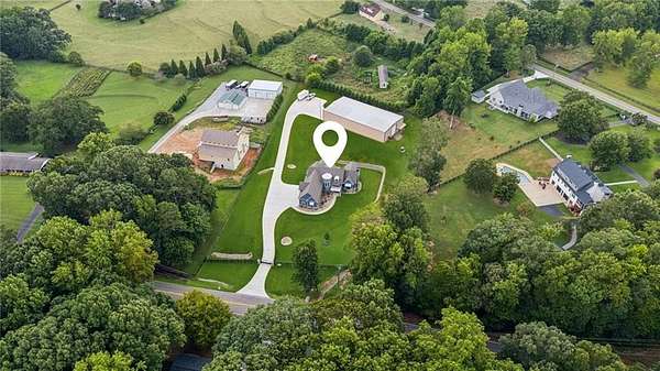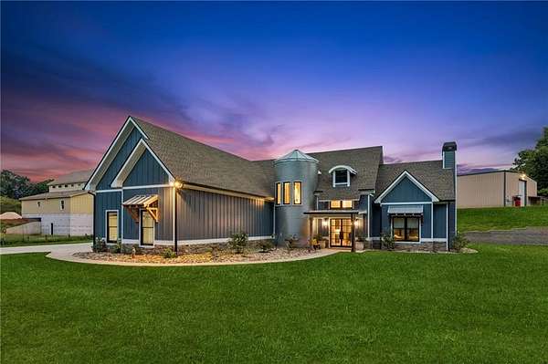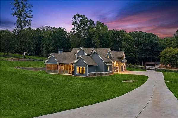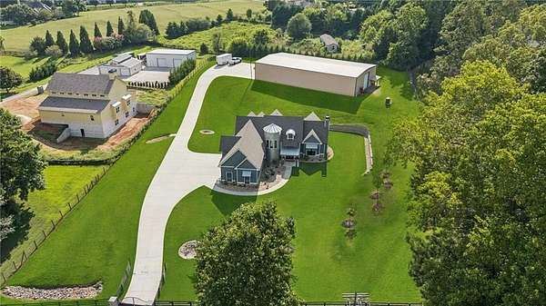 CAR COLLECTOR, RV OWNER, or HOBBYIST DREAM GARAGE....Welcome to The Silo House-a gated modern retreat where bold design meets rural freedom, nestled on 2 level acres in the highly desirable and scenic Freehome community of Cherokee County. Just minutes north of downtown Milton, this distinctive property offers not only architectural impact, but also lifestyle flexibility rarely found in today's market. Enjoy low Cherokee County taxes, this property is zoned agricultural with no HOA and no city taxes. The property invites a wide range of uses-whether you're launching a home-based business, expanding a creative practice, hosting long-term guests, or simply seeking a peaceful modern escape. At the center of the property sits a striking modern 4-bedroom, 3-and one-half bath home that blends clean lines, natural light, and modern livability in a way that feels both fresh and timeless. The home's namesake silo tower is fully integrated into the floorplan and serves as a dramatic architectural statement. Inside, a sculptural curved staircase spirals upward beneath a custom chandelier, filling the entryway with natural light and serving as a beautiful design focal point. From there, the main floor flows into an open-concept great room with soaring ceilings, dining space, and a sleek chef's kitchen with WOLF STAINLESS APPLIANCES, oversized island, walk-in pantry, and ample prep space. The adjacent screened porch with folding accordion style glass door panels allows for easy flow to the outdoors to be brought indoors offering ideal space for year-round outdoor living and entertaining. The main-level primary suite features dual walk-in closets, spa-style bathroom with soaking tub and frameless shower, and direct access to the rear patio. Upstairs features a massive private guest suite with its own well thought out private entrance, and a full bathroom. Across the hall sit 2 additional bedrooms sharing a jack and jill bathroom. Just up the hill in your backyard sits a substantial, commercial-grade accessory building with its own dedicated driveway and entrance. Spanning 110' x 55', approximately 6050 sq ft under roof, this structure offers approximately an additional1,600 square feet of heated and cooled living space, blending rugged utility with residential comfort. The lower level features a full kitchen, full bathroom, and an oversized garage bay-perfect for the CAR COLLECTOR or RV OWNER seeking climate-controlled storage. The expansive floor plan can easily accommodate a GOLF SIMULATOR, BATTING CAGE, or PICKLEBALL COURT. Upstairs, a finished living area and flex room provide a private retreat for weekend guests, remote work, or creative pursuits. Equipped with 3-phase electrical wiring and its own septic system, this building goes far beyond the typical 'outbuilding.' Whether utilized as an entrepreneurial hub, an income-producing asset, or the ultimate hobbyist's workshop, it offers unmatched versatility The entire 2-acre property is gated, fenced, and surrounded by trees and open sky. There's plenty of room for raised beds, small animals, a future vineyard, fire pit area, or pool. And with AG zoning and no HOA oversight, you're free to build, plant, and adapt the property to suit your lifestyle over time. Whether you're looking for a live/work compound, multigenerational flexibility, or a stylish retreat close to town but far from ordinary, The Silo House delivers. Located minutes from downtown Milton, Crabapple, Alpharetta, and Canton-with top-tier schools, shopping, and dining nearby-this property offers design-forward living in a peaceful setting. Come see what life looks like when form and freedom align. All square footage information is provided for your convenience and is believed to be accurate but must be independently verified by the buyer.