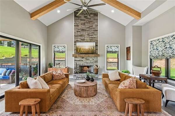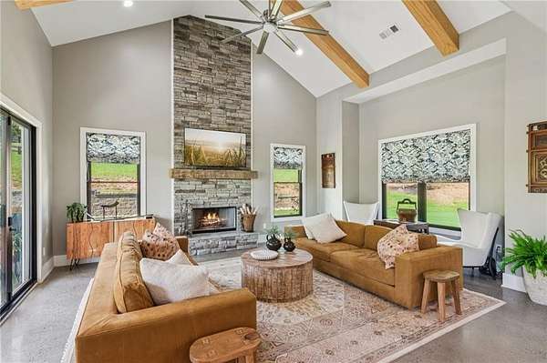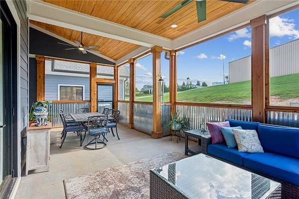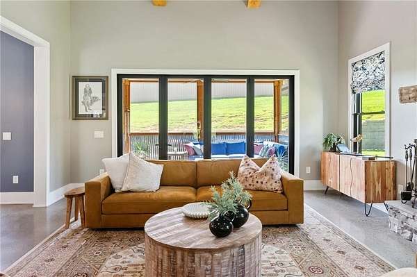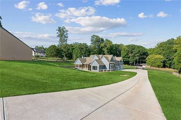 NEW PRICE REFRESH..Welcome to The Silo House-a gated modern retreat where bold design meets rural freedom, nestled on 2 level acres in the highly desirable and scenic Freehome community of Cherokee County. Just minutes north of downtown Milton, this distinctive property offers not only architectural impact, but also lifestyle flexibility rarely found in today's market. Enjoy low Cherokee County taxes, this property is zoned agricultural with no HOA and no city taxes. The property invites a wide range of uses-whether you're launching a home-based business, expanding a creative practice, hosting long-term guests, or simply seeking a peaceful modern escape. At the center of the property sits a striking modern 4-bedroom, 4- and one-half bath home that blends clean lines, natural light, and modern livability in a way that feels both fresh and timeless. The home's namesake silo tower is fully integrated into the floorplan and serves as a dramatic architectural statement. Inside, a sculptural curved staircase spirals upward beneath a custom chandelier, filling the entryway with natural light and serving as a beautiful design focal point. From there, the main floor flows into an open-concept great room with soaring ceilings, dining space, and a sleek chef's kitchen with WOLF STAINLESS APPLIANCES, oversized island, walk-in pantry, and ample prep space. The adjacent screened porch with folding accordion style glass door panels allows for easy flow to the outdoors to be brought indoors offering ideal space for year-round outdoor living and entertaining. The main-level primary suite features dual walk-in closets, spa-style bathroom with soaking tub and frameless shower, and direct access to the rear patio. Upstairs features a private guest suite with its own full bathroom-perfect for teens, in-laws, or long-stay visitors, plus two additional bedrooms that share a full bath. Just across the drive sits a separate garage/workshop structure (approximately 1600 square feet heated and air conditioned) with its own dedicated driveway access. The lower level features a full kitchen, full bathroom, oversized garage bay, and additional conditioned space-ideal for a creative studio, professional workspace, storage, or showroom-style use. Upstairs, a finished living room and flex room offer privacy and flexibility, whether for weekend guests, remote work, or personal retreat. The building was previously used for commercial purposes and retains the kind of infrastructure and layout that makes it ideal for entrepreneurs, designers, collectors, or serious hobbyists. Unlike many "outbuildings," this commercial style structure, with 3-PHASE ELECTRICAL wiring offers both function and comfort-with real potential to serve as a creative hub or income-producing space. The entire 2-acre property is gated, fenced, and surrounded by trees and open sky. There's plenty of room for raised beds, small animals, a future vineyard, fire pit area, or pool. And with AG zoning and no HOA oversight, you're free to build, plant, and adapt the property to suit your lifestyle over time. Whether you're looking for a live/work compound, multigenerational flexibility, or a stylish retreat close to town but far from ordinary, The Silo House delivers. Located minutes from downtown Milton, Crabapple, Alpharetta, and Canton-with top-tier schools, shopping, and dining nearby-this property offers design-forward living in a peaceful setting. Come see what life looks like when form and freedom align. All square footage information is provided for your convenience and is believed to be accurate but must be independently verified by the buyer.