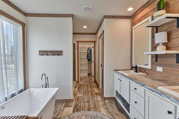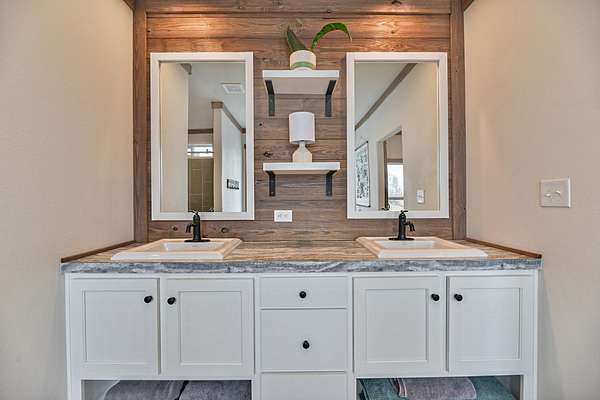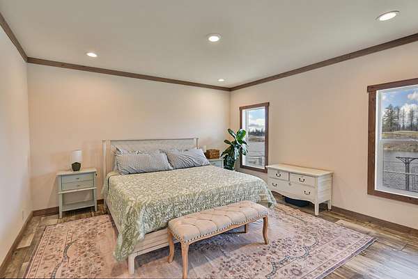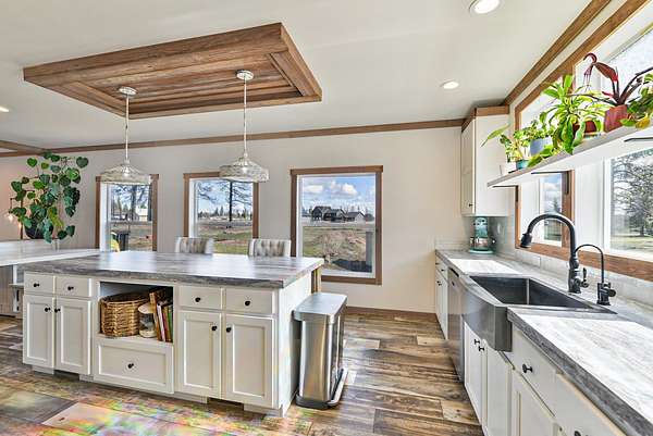 Your new waterfront home on acreage awaits! Set on 11.29 acres tucked between Silver Lake and Medical Lake, this property has endless possibilities. Built in 2024, the doublewide manufactured home features open concept living with tons of windows providing lots of natural light throughout the living space. Trimmed with whitewashed barnwood, lvp flooring & modern fixtures, the design details throughout the home give it the perfect modern farmhouse vibe. Primary suite features a 5-piece bathroom with giant soaking tub, walk-in shower, dual vanity & large walk-in closet. On the other end of this split floor plan are 2 more bedrooms and a full bath. Off the kitchen is the mudroom & laundry plumbed for a utility sink. Exterior vinyl fence enclosure for your furry friends, along with a stunning garden area set against the backdrop of a private use pond - perfect for kayaking or paddle boarding. Back side of the property holds remaining acreage, perfect for a future ADU! New septic, new well pump.