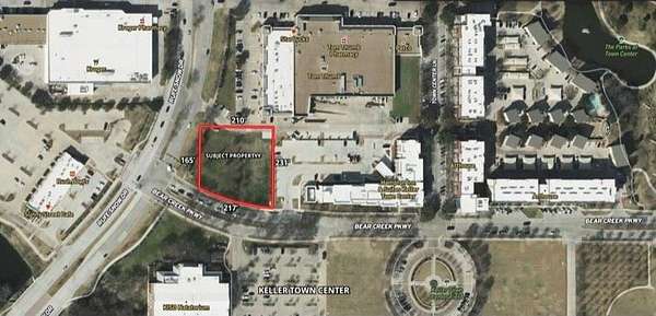 Est $9,820/moONE of the LAST lots available for development in the Town Center over-lay of Keller. Prime restaurant pad located in front of brand new Hampton Inn & Suites with GREAT visibility along Rufe Snow Drive and the HARD corner of Bear Creek Parkway. Part of Keller Town Center and across from Movie house & Eatery with north of 30,000 vehicles per day visibility. .Average household income of $160k +, and total population above 35,000 within 2 miles. One of the LAST top-shelf buildable commercial lots within the Keller Town Center designation.