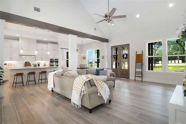 OWNER FINANCING AVAILABLE. Modern farmhouse charm meets high-performance construction in this newly built home on 3 wooded acres in sought-after Bluebonnet Ridge, just off Tin Top Road in Weatherford. Designed with care and crafted to last, this home offers thoughtful upgrades that go beyond the surface--including high-impact hurricane ties for extra durability in Texas weather, a fully spray foam insulated attic for energy efficiency, and solid core doors throughout for superior sound insulation.