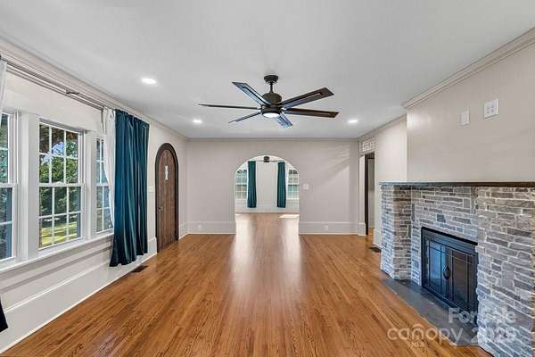 Step into timeless charm with this stunning stone exterior home that feels like a true retreat from everyday life. Nestled on over 1.85 private acres, this property offers a rare blend of nostalgia, modern updates, and inviting spaces both indoors and out, creating a home that is as warm and welcoming as it is unique. The large and inviting front porch sets the tone-a place to unwind, greet guests, or enjoy the private surroundings. Inside you'll find the thoughtful architectural and updated details, including, graceful arched doorways, recessed lighting stylish, not standard, ceiling fans, walls stoned walls and fireplace. Warm wood flooring compliments the home's character and charm, giving timeless elegance in the sophisticated style of the early 1900s. The kitchen is a chef's dream for anyone who loves to cook or entertain with its generous countertops, huge pantry spaces that make organization effortless. The layout flows seamlessly into both formal and casual living areas, allowing for quiet retreat spaces or boisterous gatherings.There is always room for a home office or private room. The unfinished attic offers endless possibilities for expansion, and the oversized shed provides space for hobbies, storage, or a potential workshop. Every corner of this home is filled with opportunities to customize while maintaining the warmth and character that make it inviting. When you step outside, the land is as impressionable at the home. A covered porch and extended patios in the back and side provide ideal spaces for morning coffee, evening relaxation, and entertaining guests. The fenced backyard is designed for enjoyment, not chores, making it perfect for barbecues, fire pit nights, or playful gatherings with family and friends. With over 1.85 acres of privacy, the grounds feel like a retreat all their own, offering the space to create memories while maintaining a sense of tranquility. This home has been upfitted for the next homeowner, which include modern updates but preserve's the home's historic charm. The newer roof, new HVAC system, updated plumbing and newer windows on the main floor ensure comfort and reliability year-round. The updated electricals have been modernized to meet today's standards, and every major mechanical component has been thoughtfully maintained, giving buyers confidence in both safety and function. The bathrooms are included in the home's updates. These upgrades allow you to enjoy the home without compromise. The complimentary window treatments conveys along with the refrigerator and washing and dryer in the spacious laundry room. This property is a lifestyle, not just a home. It combines historic and nostalgic charm meets modern comforts, thoughtful upgrades, and flexible living spaces. Whether you're outside enjoying the inviting front porch, preparing meals in the culinarian's kitchen, hosting friends in the yard, or dreaming of expanding the living space into the attic, every aspect of this home is designed to delight. What makes this home even more charming is the absence of any home owners association dues. You're moments away from eateries, shopping, mountain hiking and breathtaking walks. Shared driveway. During home tour, please park in the backyard during home tours. Do not block back entry for 935 Church Street. Home is being sold as is.