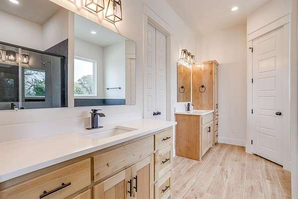 Bank Owned New Build. Peaster ISD! 2+acres. in new suburban subdivision. Great corner lot. Lots of space and privacy. Beautiful modern home. Light and Bright open floorplan. Lots of natural wood throughout. Many modern elements but keeping in the traditional style. Craftsman-style interior doors. Cozy & inviting stone wood burning fireplace. Kitchen has solid surface counters with large farmhouse sink and oversized commercial grade range with exhaust. Nice sized laundry with tons of cabinet space and storage. Upstairs has a great bonus room with closet & bath. Back covered patio is large and fantastic for entertaining. Two ceiling fans and outdoor stone wood burning fireplace with entries to main living and to garage. Three-car garage with mudroom entry. Lots of room for a shop or a pool. High elevation with pretty views.