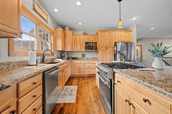 - Cathedral Ceiling(s), Ceiling Fan(s), Double Vanity, Kitchen Island, Open Floorplan, Soaking Tub, Solid Surface Counters, Walk-In Closet(s)