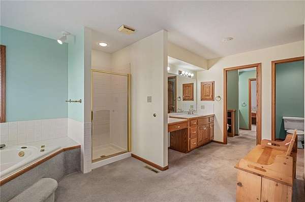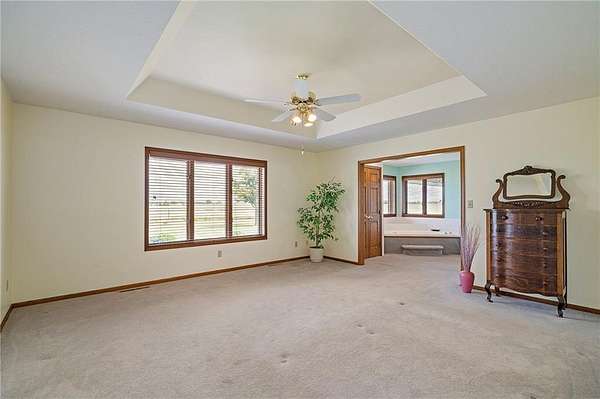- Ceiling Fan(s), Custom Cabinets, Kitchen Island, Stained Cabinets, Walk-In Closet(s)
